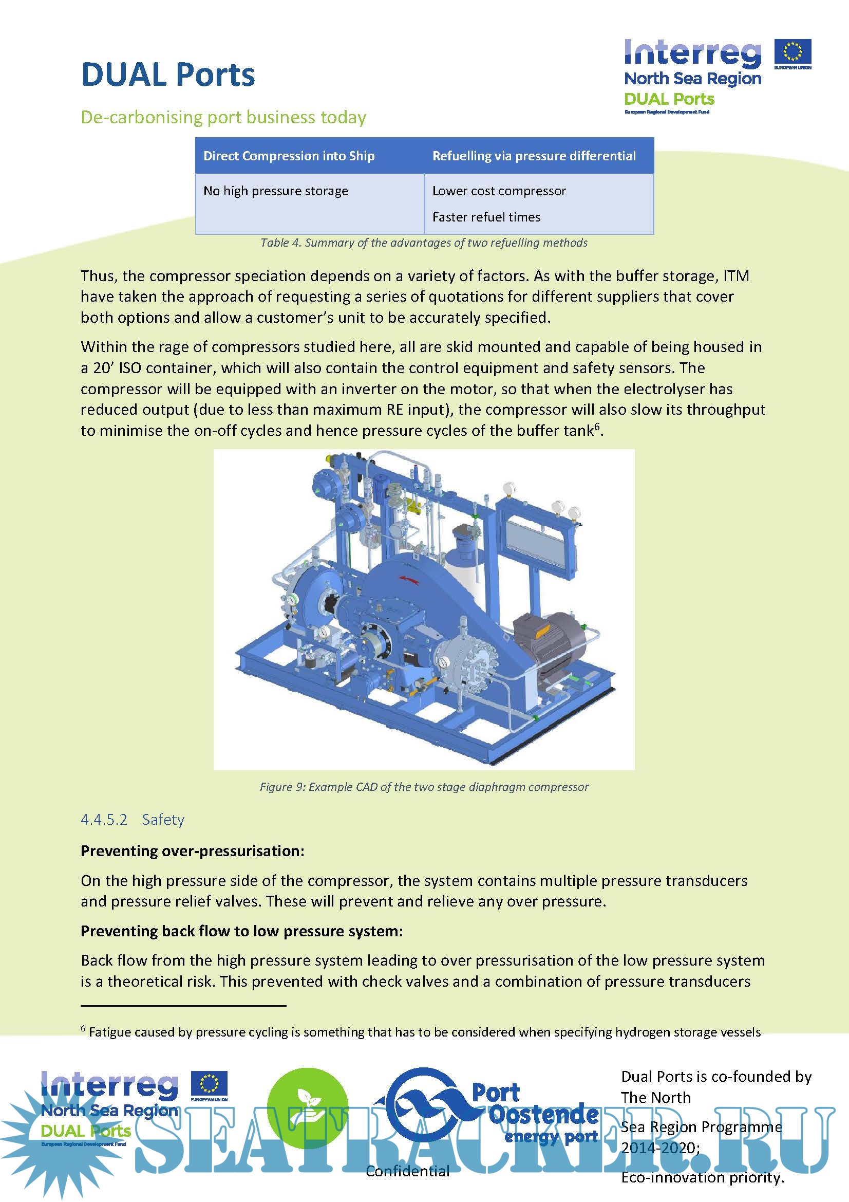Year: 2019 Language: english Author: ITM Power Genre: Research papers Format: PDF Quality: eBook Pages count: 84 Description: A safety comparison was undertaken between LNG and liquefied hydrogen (LH2). It was concluded that due to the large quantities of stored energy, both these fuels potentially present a significant hazard, and require careful engineering controls. The differences in safety between the fuels is minimal, with hydrogen probably being safer if stored outdoors, and LNG probably safer if stored indoors. It was concluded that hydrogen is a viable fuel, with liquefied hydrogen being the preferred storage method. At present, there is insufficient liquefied hydrogen production available in Europe, and while this will change in the long-term, in the short-term, gaseous hydrogen is likely to be the most prevalent. This view was reinforced when it was confirmed that the Orkney Islands are likely to be receiving a gaseous hydrogen ferry for deployment in the near future. Gaseous hydrogen was therefore taken forwards for consideration in this bunkering system feasibility study. It was concluded what whilst the basic components for a bunkering systems are set, their configuration will change depending on the specifics of each customer. Thus, an approach was taken to design a modular and scalable system that could be readily adapted. The details of each module are provided.