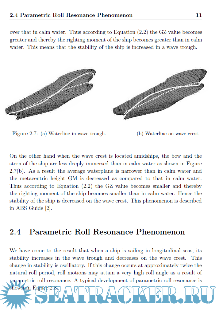 2.3 Stability of Ship in Longitudinal Waves . . . . . . . . . . . . . . . 10