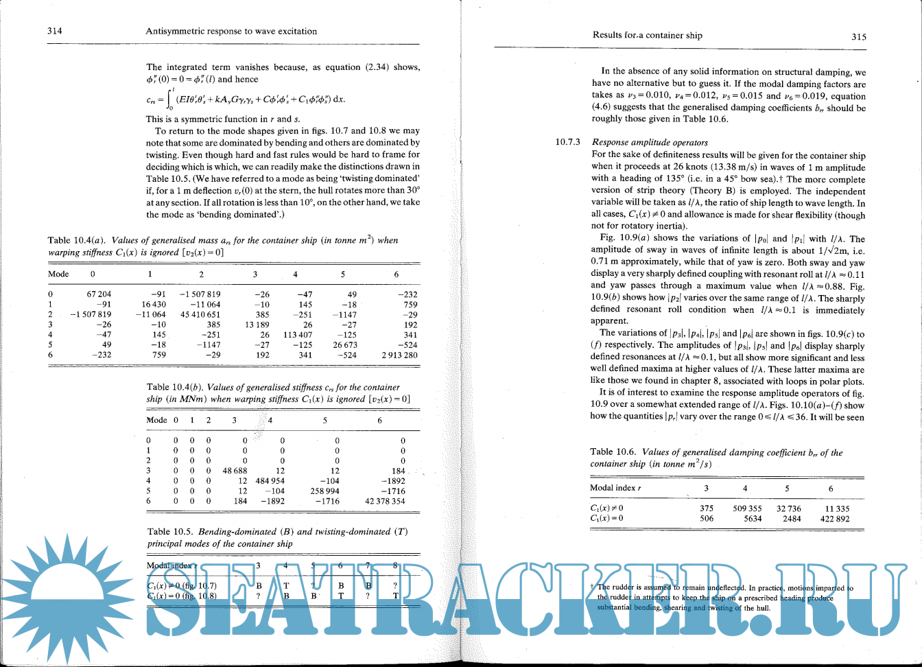 Ship response. The dry hull. More accurate analysis of hull dynamics. The characteristics of practical hulls. Ship distortion in still water. Wave theory. Symmetric generalised fluid forces. Symmetric response. Transient loading. Antisymmetric response to wave excitation. Statistical analysis of ship response. Responses of other marine structures to waves.
