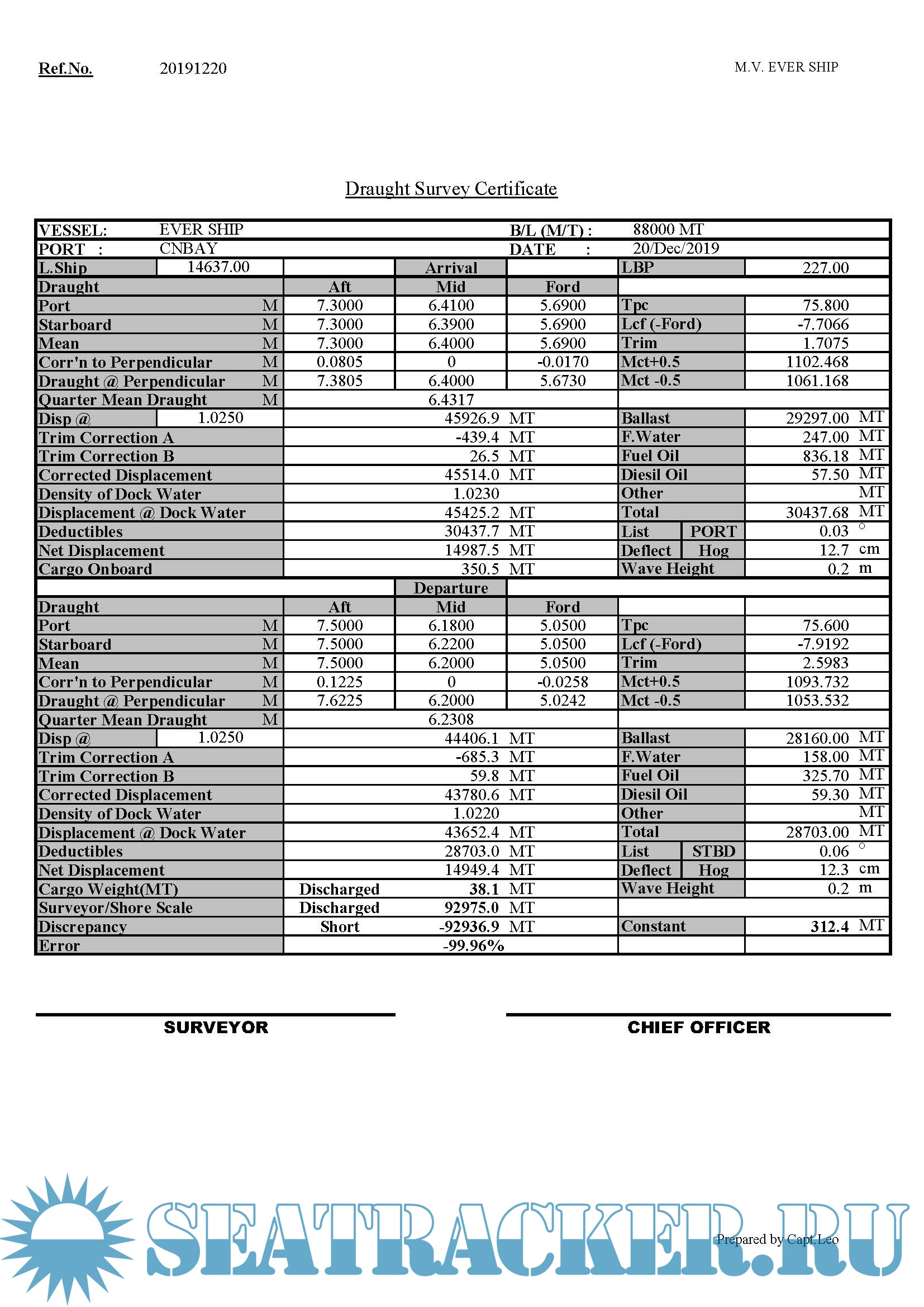 Excel Draft Survey [2019,XLSX] Draft and Trim calculation