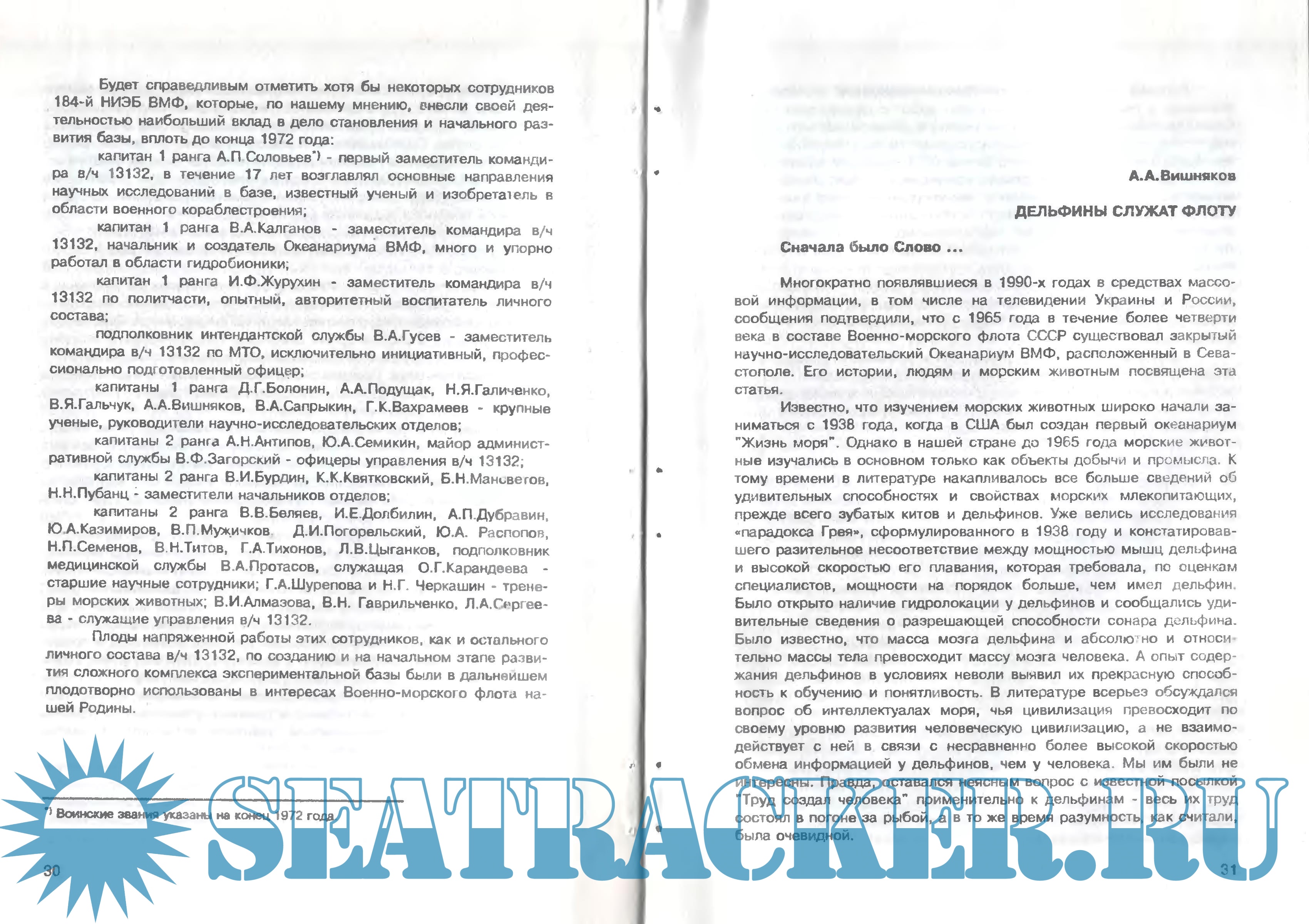 Описание: Сборник статей, посвященный истории создания и деятельности научно-экспериментальной базы Военно-Морского Флота на Черном море в районе Севастополя. База была создана для проведения исследований в натурных условиях по гидродинамике, гидроакустике, бионике и включала в себя экспериментальные лаборатории, специальные полигоны и единственный в Советском Союзе дельфинарий, в котором были выполнены уникальные эксперименты с дельфинами. В базе были проведены многочисленные исследования на крупномасштабных буксируемых и автономных моделях; база обеспечивала проведение испытаний на экспериментальной подводной лодке-лаборатории проекта 1710, которые были прерваны из-за распада Союза.