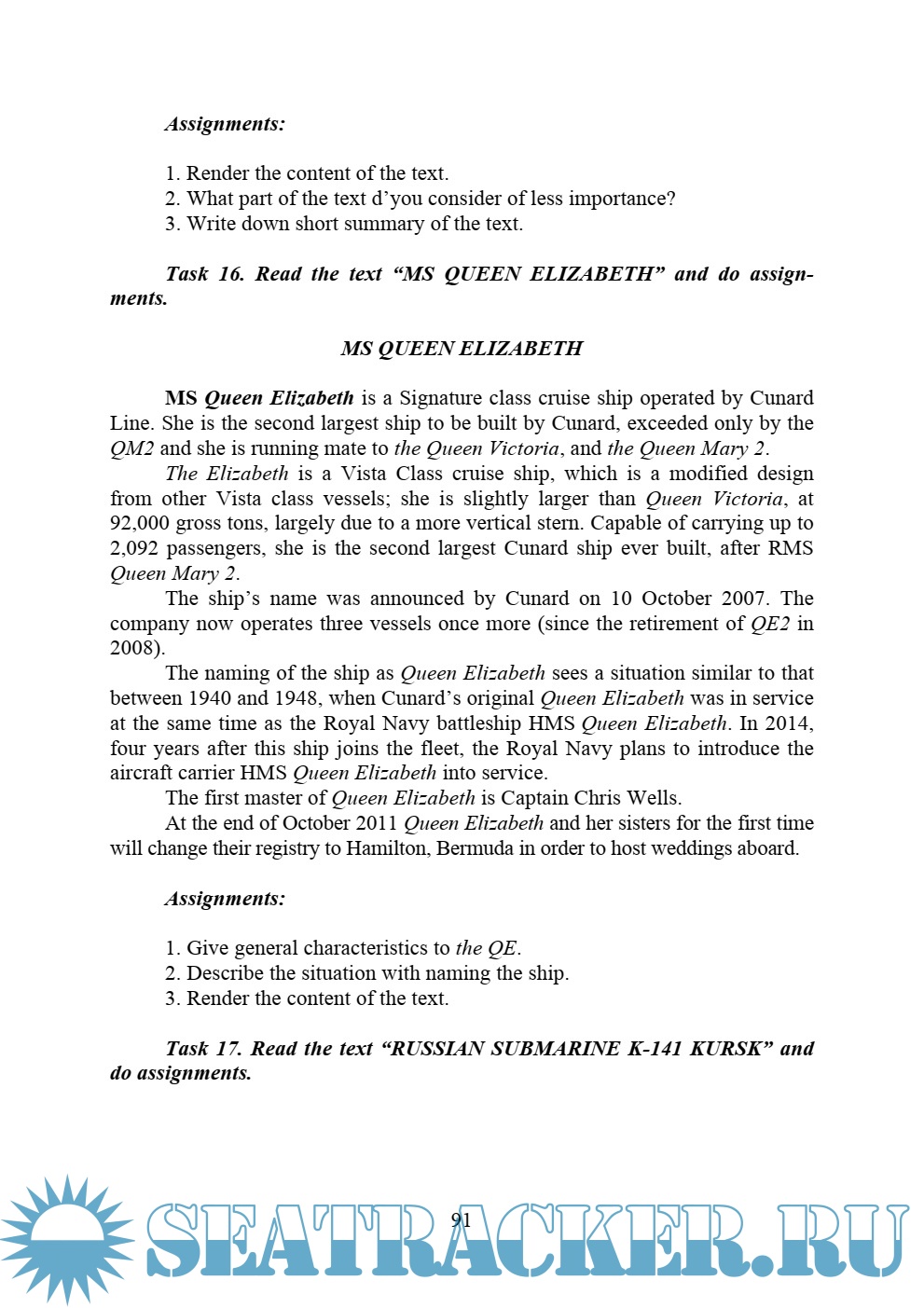 Описание: Учебное пособие предназначено для магистров высших учебных заведений, обучающихся по направлению подготовки 180100 «Кораблестроение, океанотехника и системотехника объектов морской инфраструктуры».Основной целью пособия является обучение чтению и пониманию профессионально ориентированных текстов, а также развитие умений и навыков разговорной речи. Учебное пособие позволяет осуществить сознательное отношение студента к самому процессу обучения, предполагает речевую активность студента в ходе занятия, предусматривает учет будущей специальности и профессиональных интересов студента на занятиях по языку, а также способствует формированию и развитию навыков работы с аутентичным текстом с применением полученных навыков.