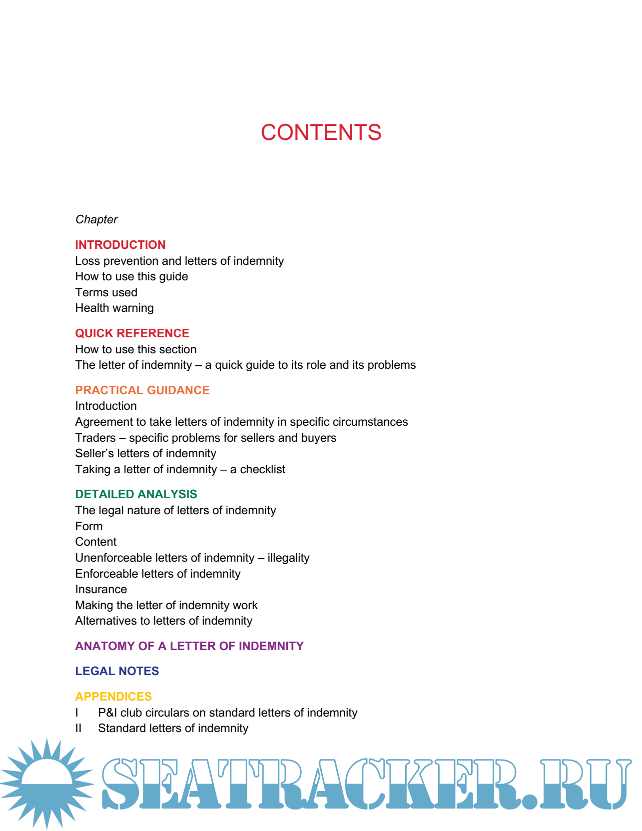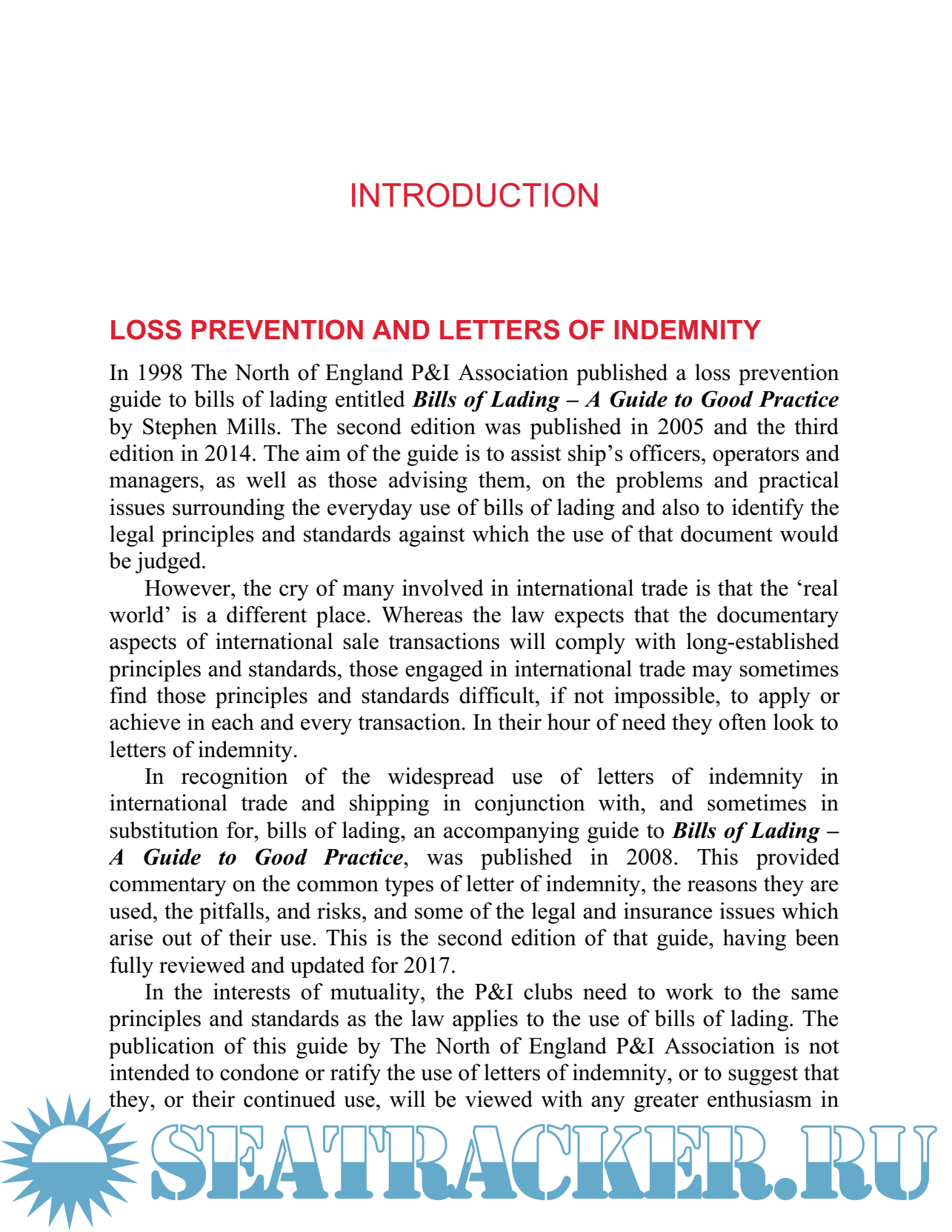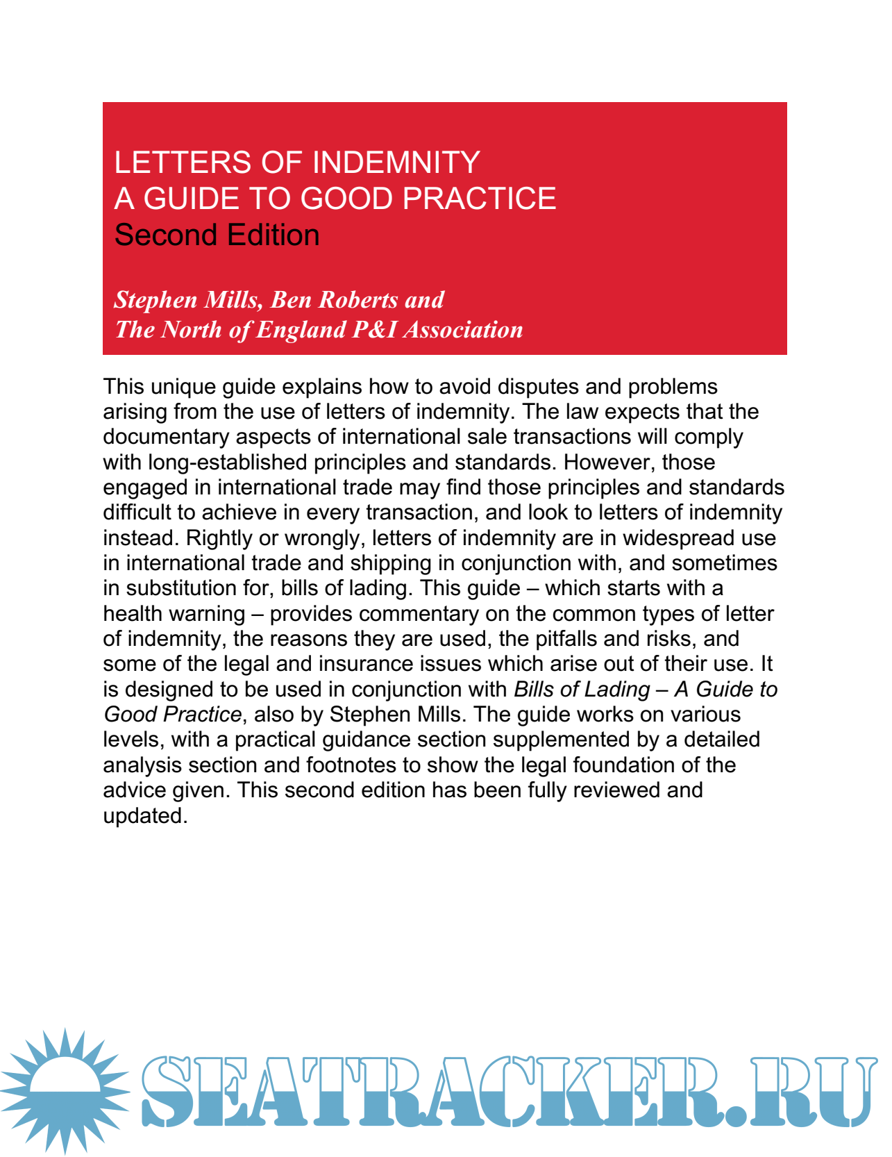 Year: 2017 Language: english Author: Stephen Mills, Ben Roberts and The North of England P&I Association Genre: Guide Publisher: The North of England P&I Association Edition: 2 ISBN: 978 0 9574936 1 2 Format: PDF Quality: eBook Pages count: 73 Description: This unique guide explains how to avoid disputes and problems arising from the use of letters of indemnity. The law expects that the documentary aspects of international sale transactions will comply with long-established principles and standards. However, those engaged in international trade may find those principles and standards difficult to achieve in every transaction, and look to letters of indemnity instead. Rightly or wrongly, letters of indemnity are in widespread use in international trade and shipping in conjunction with, and sometimes in substitution for, bills of lading. This guide – which starts with a health warning – provides commentary on the common types of letter of indemnity, the reasons they are used, the pitfalls and risks, and some of the legal and insurance issues which arise out of their use. It is designed to be used in conjunction with Bills of Lading – A Guide to Good Practice, also by Stephen Mills. The guide works on various levels, with a practical guidance section supplemented by a detailed analysis section and footnotes to show the legal foundation of the advice given. This second edition has been fully reviewed and updated.
