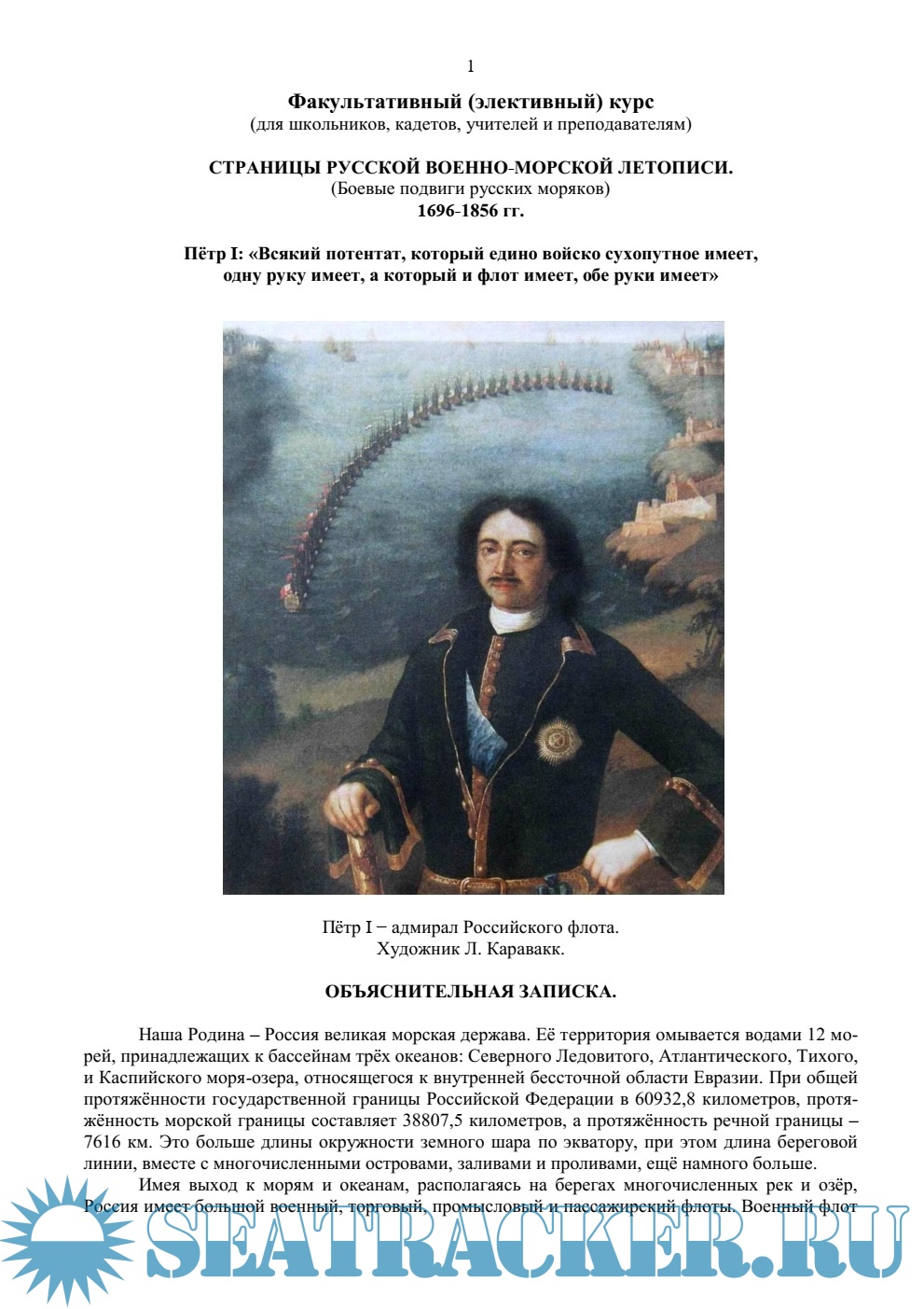 Описание: Условной датой основания русского военно-морского флота считается 20 (30) октября 1696 г., когда Боярская дума постановила: «Морским судам быть». С этого времени флот участвовал почти во всех войнах, которые вела Россия, пройдя через десятки боёв и сражений, большинство из которых им были выиграны. А если русские моряки погибали, то, как правило, погибали с честью. Конечно, были в истории Российского флота и трагические страницы, о которых также нельзя забывать. Кроме боевых подвигов, русские военные моряки совершили множество научных плаваний и кругосветных путешествий, открыв при этом новые земли и острова, проливы и заливы. Если посмотреть на географическую карту, то можно встретить имена многих из них, либо названия их славных кораблей.