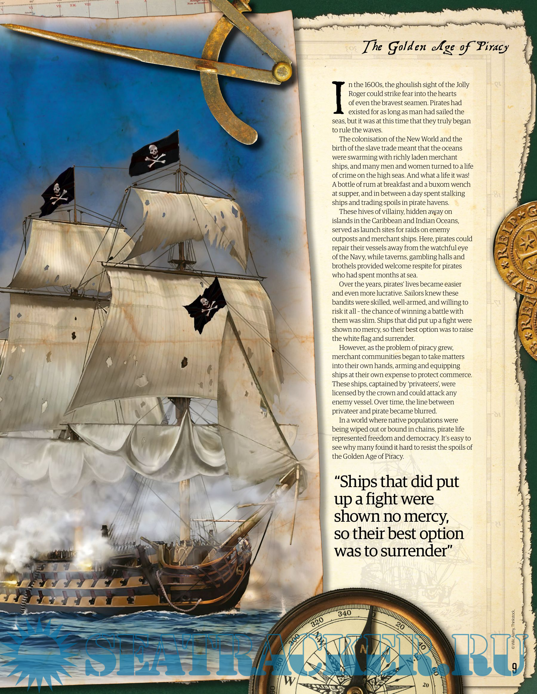 Year: 2018 Language: english Author: Digital Edition Genre: History Format: PDF Quality: eBook Pages count: 148 Description: In the 17th and 18th centuries, sailing from Europe or Africa to the Americas, or trading from India to Central America, was a risky undertaking. Ruthless pirates lurked on the horizon, craving wealth and reputation. In the All About History Book of Pirates, we cover everything you need to know about the legendary Golden Age of Piracy. Uncover the true stories of the bloodthirsty buccaneers who made their fortune plundering the high seas, from Captain Kidd and Edward ‘Blackbeard’ Teach to female pirates Anne Bonny and Mary Read. Find out what life was really like aboard a pirate ship, from the roles of the crew to divvying out the spoils. Investigate the founding and exploits of the notorious Flying Gang, a band of fierce pirate captains, and the piratical haven they founded on the island of New Providence in the Bahamas. Packed with incredible illustrations and insights into the period, this is the perfect guide for anyone who wants to learn about this famed Golden Age of history.