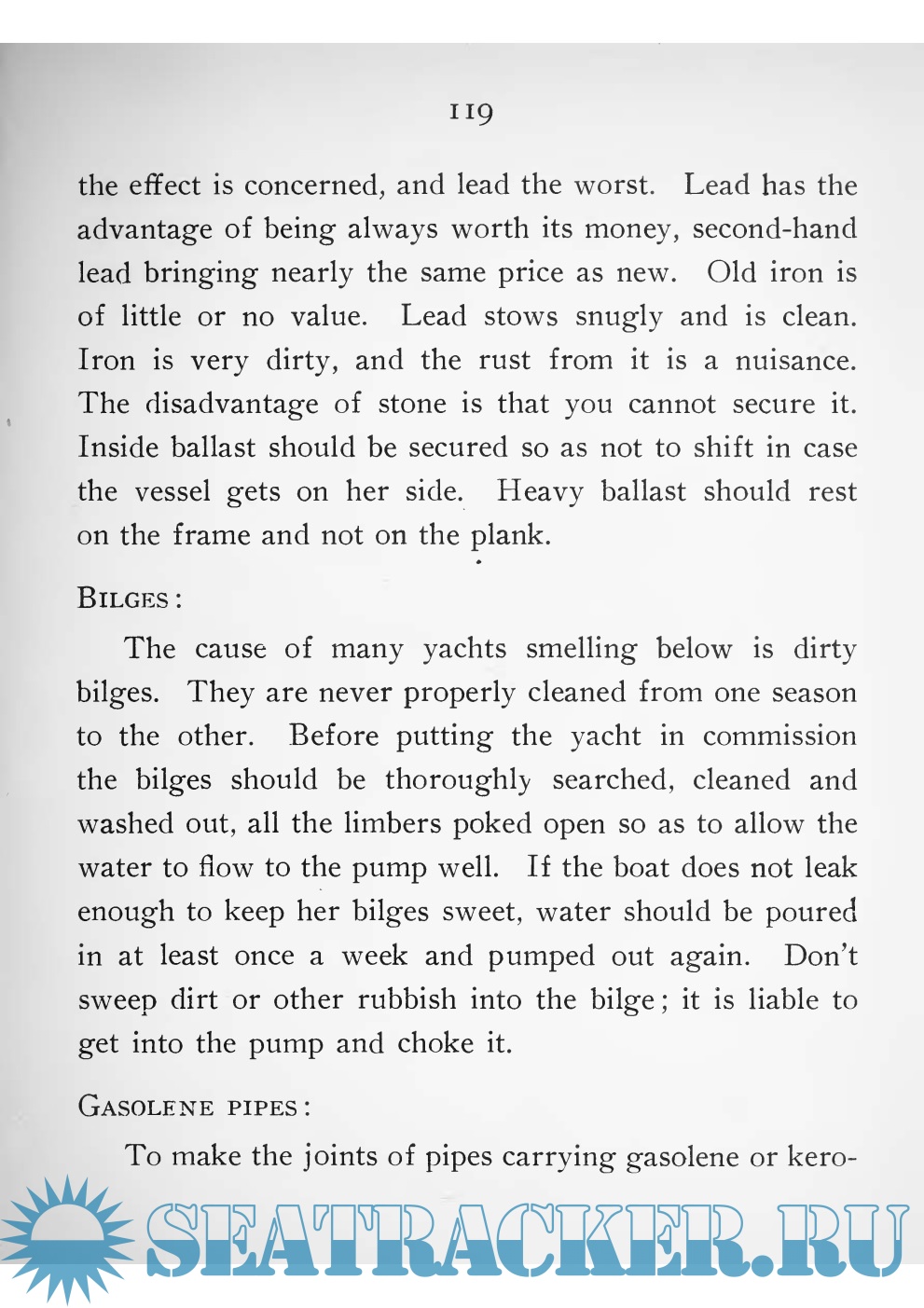 Year: 1904 Language: english Author: Day T.F. Genre: Manual Publisher: Rudder Publishing Format: PDF Quality: Scanned pages Pages count: 152 Description: Excerpt from the Introduction: This book is the response to a constant appeal for information. During the last nine years I have received thousands of letters, asking for hints on all manner of subjects relating to the care, handling, buying and equipping of small yachts. The majority of these letters came from boys and young men living throughout the world, who were just entering the sport, and who were anxious to become skillful sailors and competent skippers. I can thoroughly understand their position, and sympathize with their desire for fuller and more practical knowledge than that contained in the majority of works upon yachting.