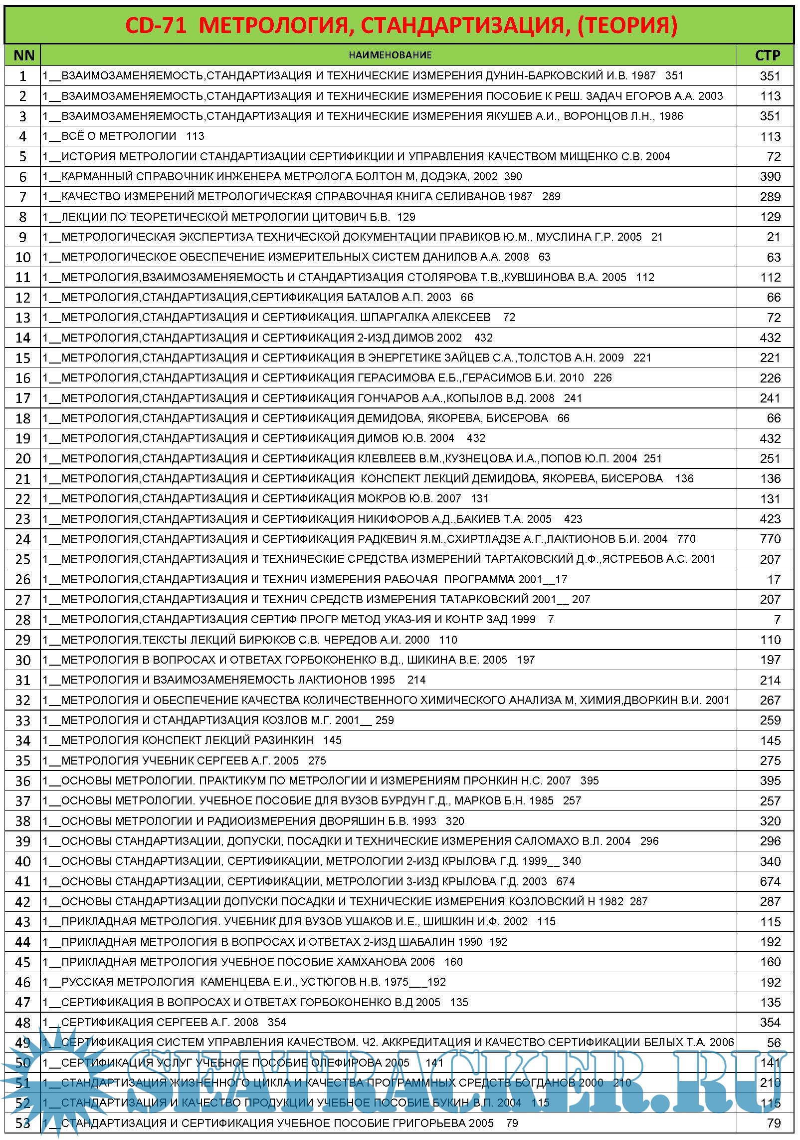 CD‐71 МЕТРОЛОГИЯ, СТАНДАРТИЗАЦИЯ, (ТЕОРИЯ)NN НАИМЕНОВАНИЕ СТР