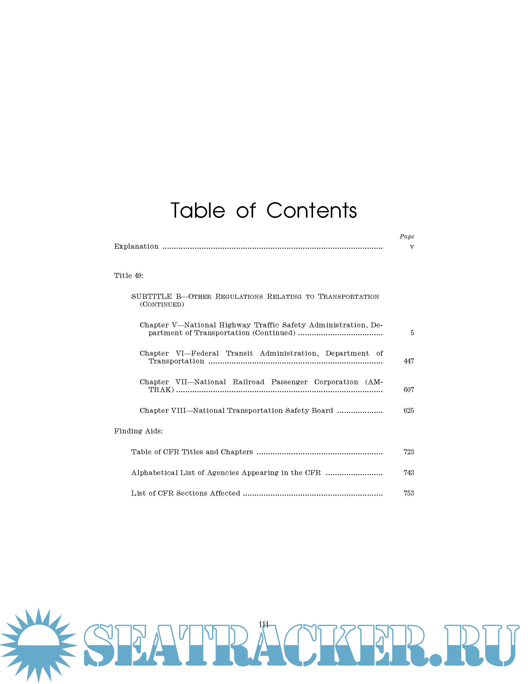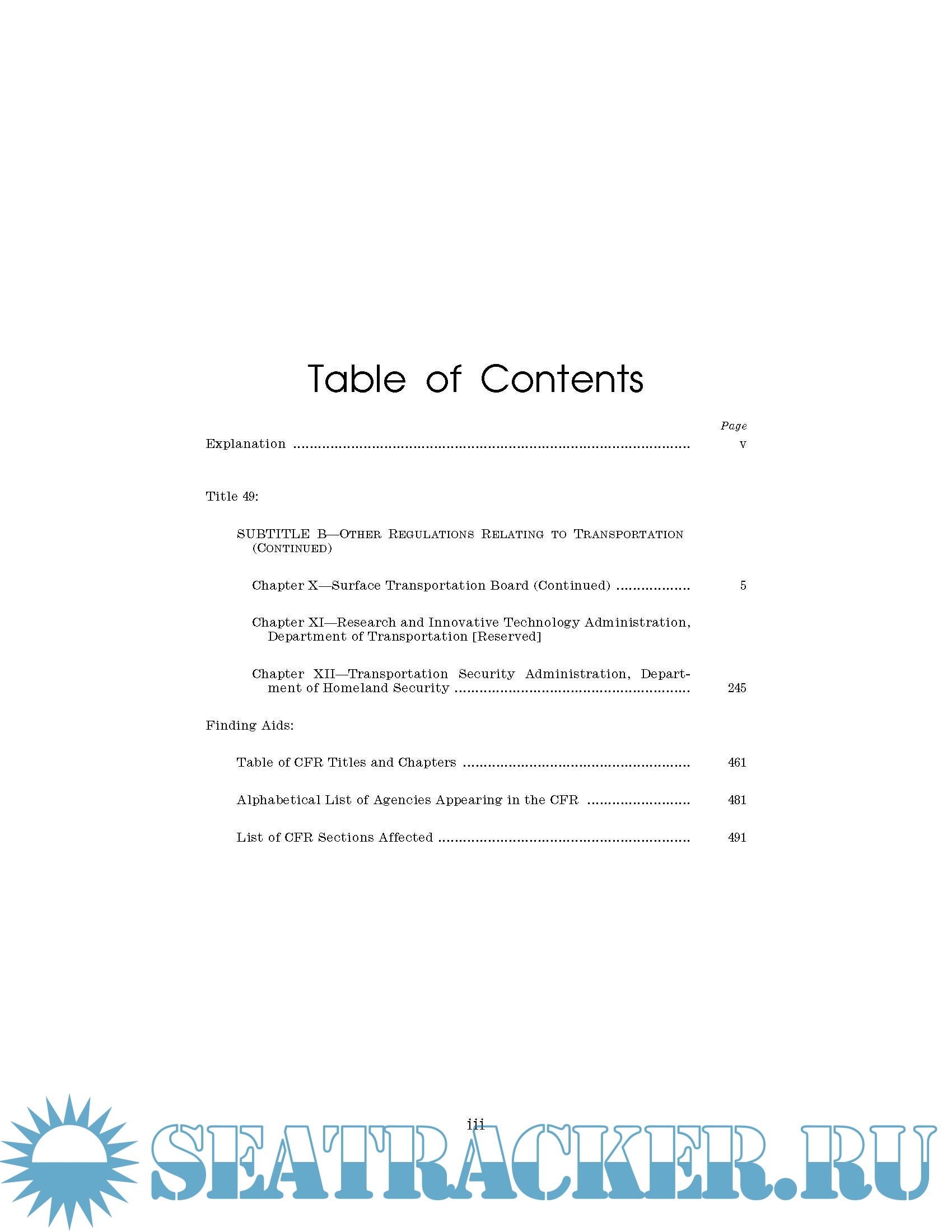 Description: Code of Federal Regulations Title 49 Transportation