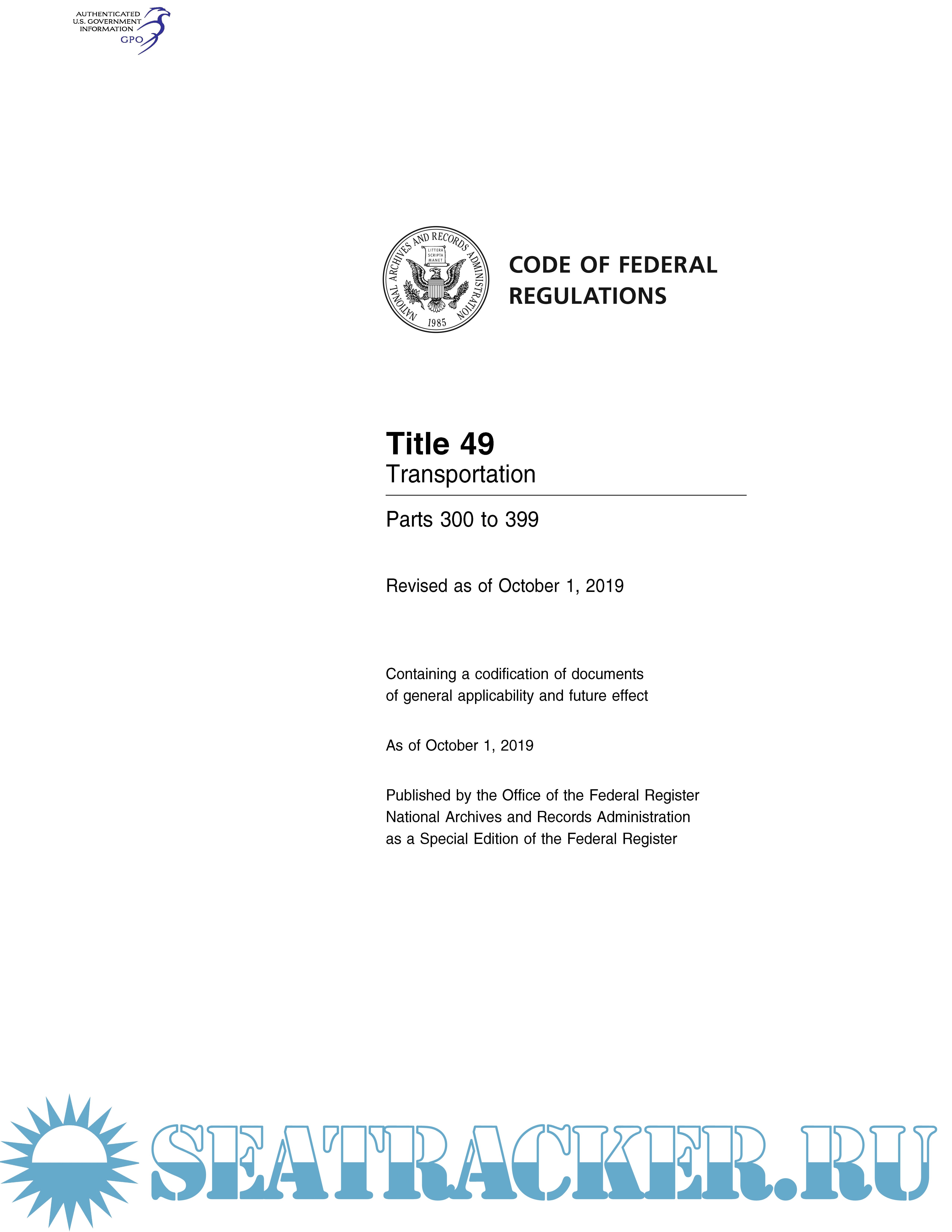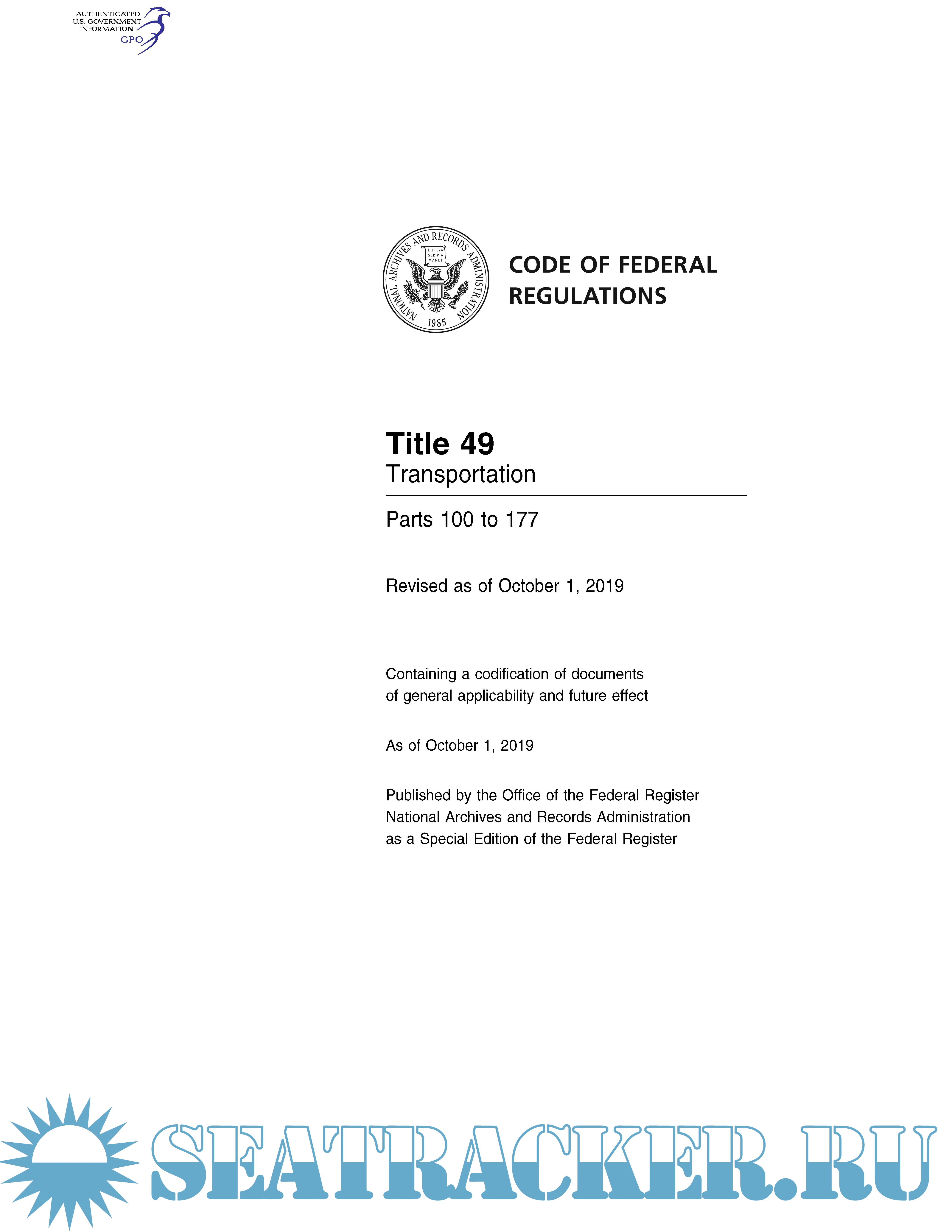 Code of Federal Regulations CFR Title 49 - Transportation Parts 1 - 1699. October 1, 2019
