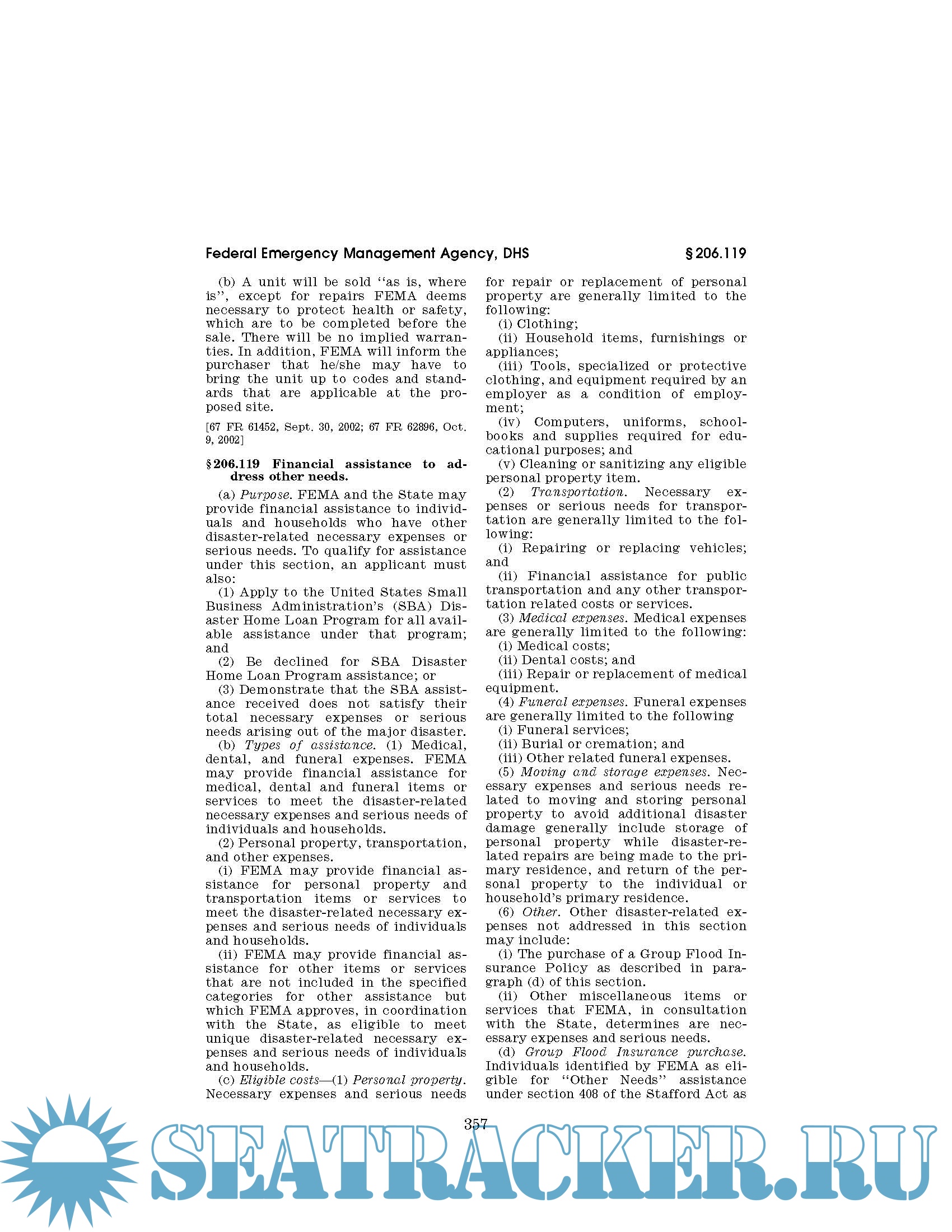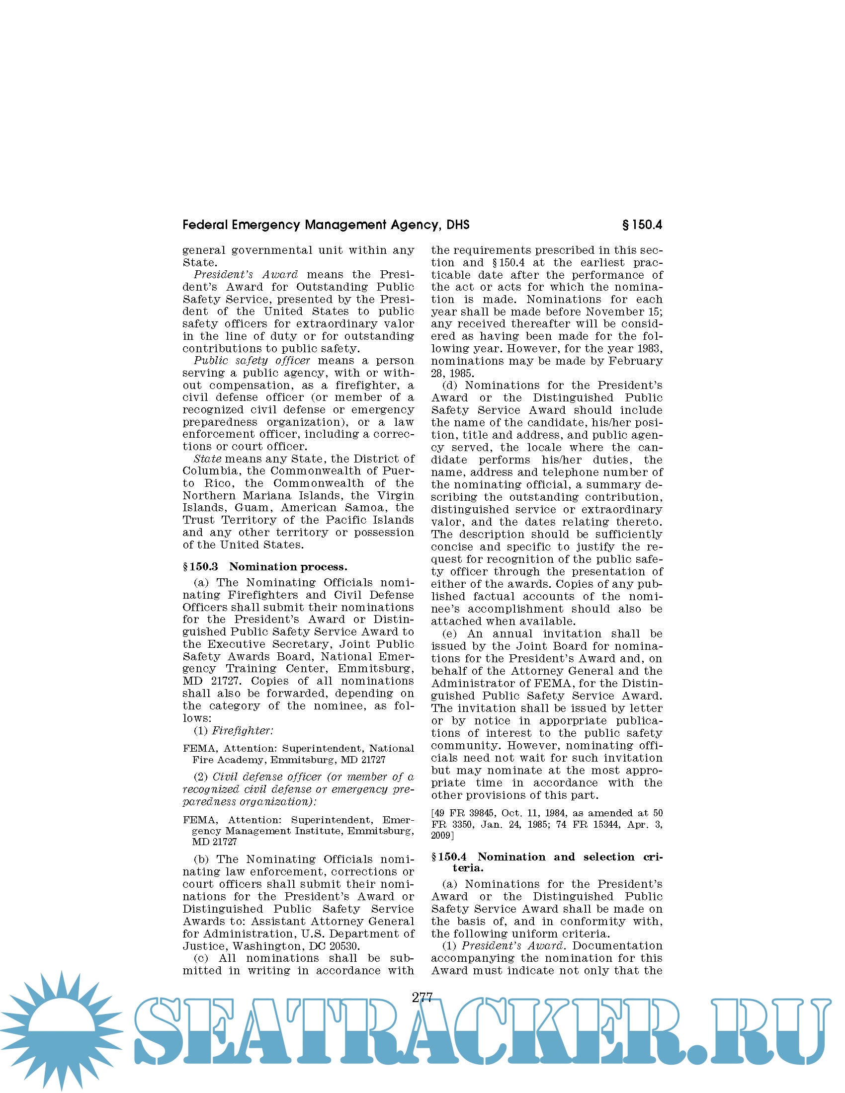 Code of Federal Regulations CFR Title 44 - Emergency Management and Assistance Parts 1 - 499. October 1, 2019