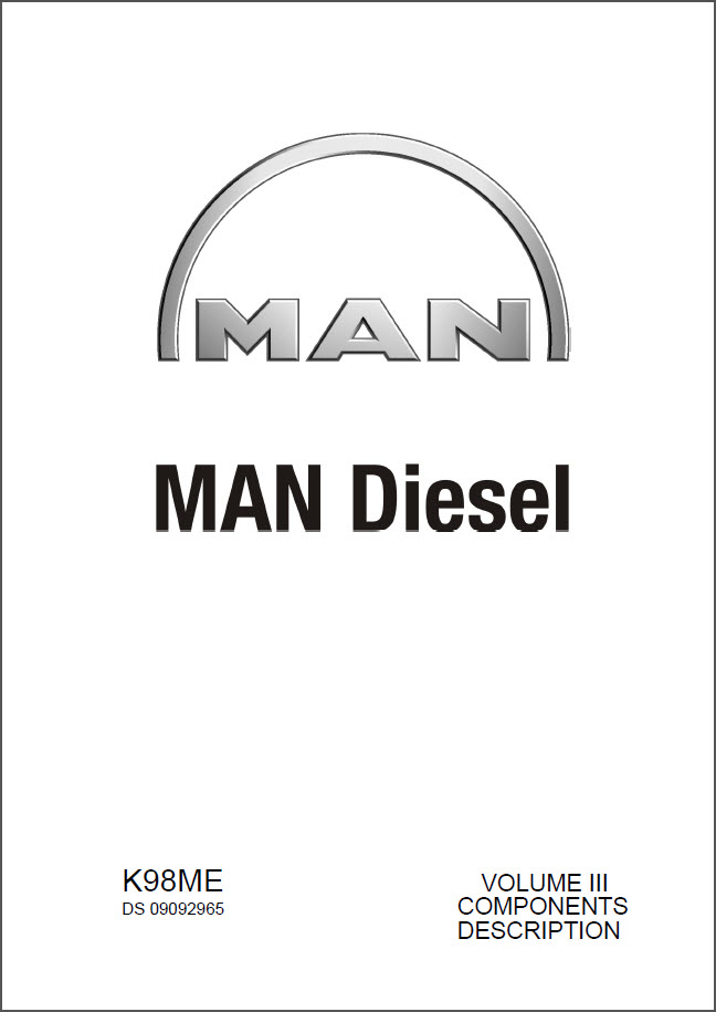 This book forms part of a set of books consisting of three volumes entitled: Vol. I OPERATION Vol. II MAINTENANCE Vol. III COMPONENTS, DESCRIPTIONS The purpose of these books is to provide general guidance on operation and maintenance and to describe the constructional features of a standard version of an MAN B&W main diesel engine. Deviations may be found in a specific plant. In addition, the books can be used for reference purposes, for instance in correspondence and when ordering spare parts. To ensure optimum efficiency, reliability and lifetime of the engine and its components, only original spare parts should be used when replacing parts on the engine. When used in texts and illustrations, the designation “D” refers to the information given on the data sheets inserted in the respective books. Reliable and economical operation of the diesel engines is conditional upon its correct operation and maintenance in accordance with MAN Diesel’ instructions. Emissions related maintenance of the diesel engine shall be performed as specified in MAN Diesel’ instructions and any additional instructions to that effect included in the Technical File. Consequently, it is essential that the engine room personnel are fully acquainted with the contents of this book and, in respect of instructions on emissions related maintenance of the diesel engine, also the additional instructions to that effect set out in the Technical File. This book is subject to copyright protection, and should therefore not, in whole or in part, be copied, reproduced, made public or in any other way made available to a third party without the written consent