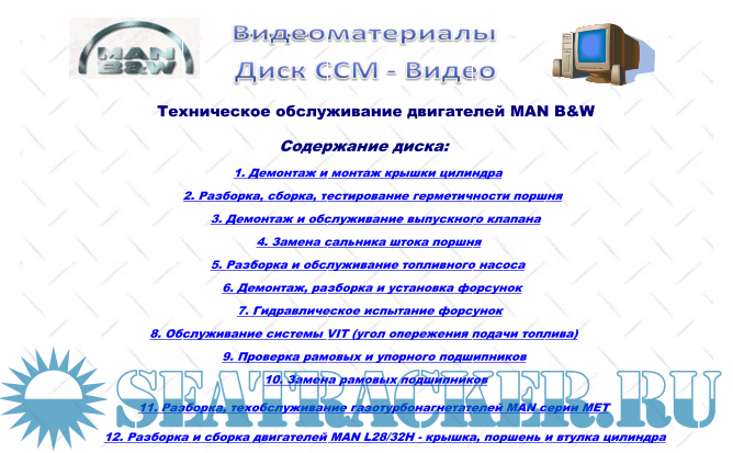 Описание: Видеоматериалы фирмы МАН также можно скачать бесплатно с этого сайта по ссылке ниже в формате mpg.-Видеоинформация размещена на DVD диске. Диск (ССМ - Видео) включает в себя видеоматериалы (12 фильмов формата mpg) по двигателям MAN B&W: