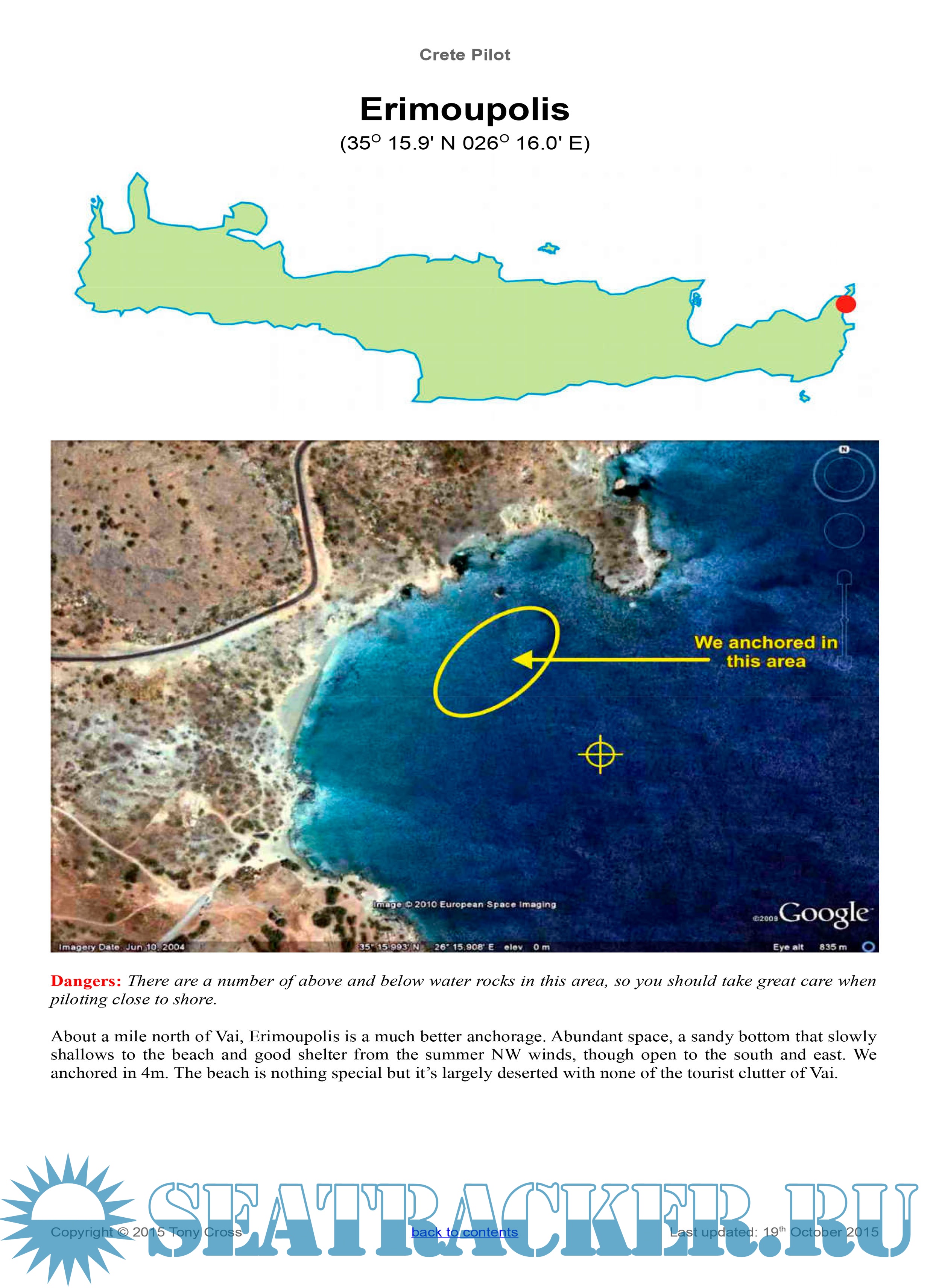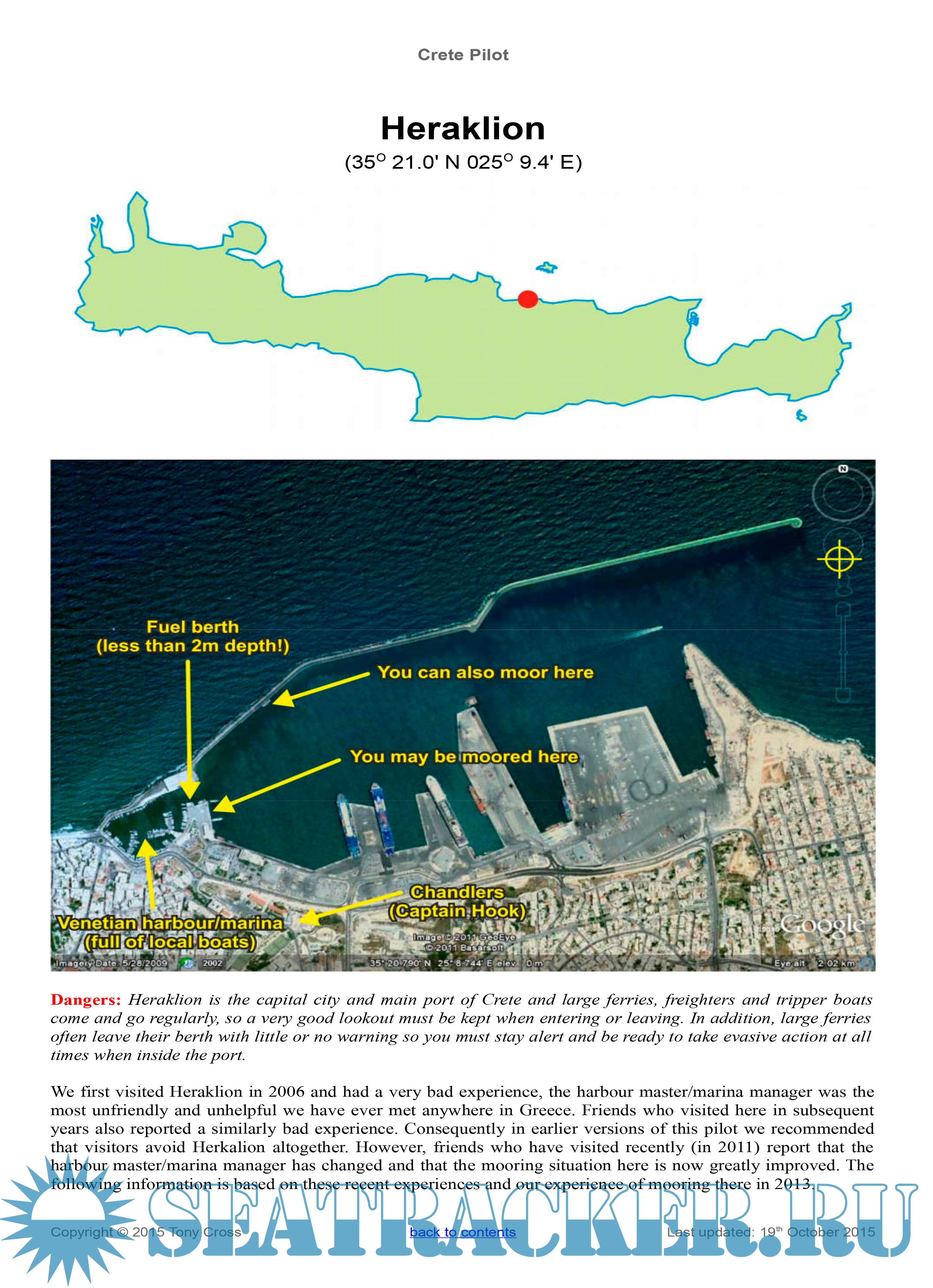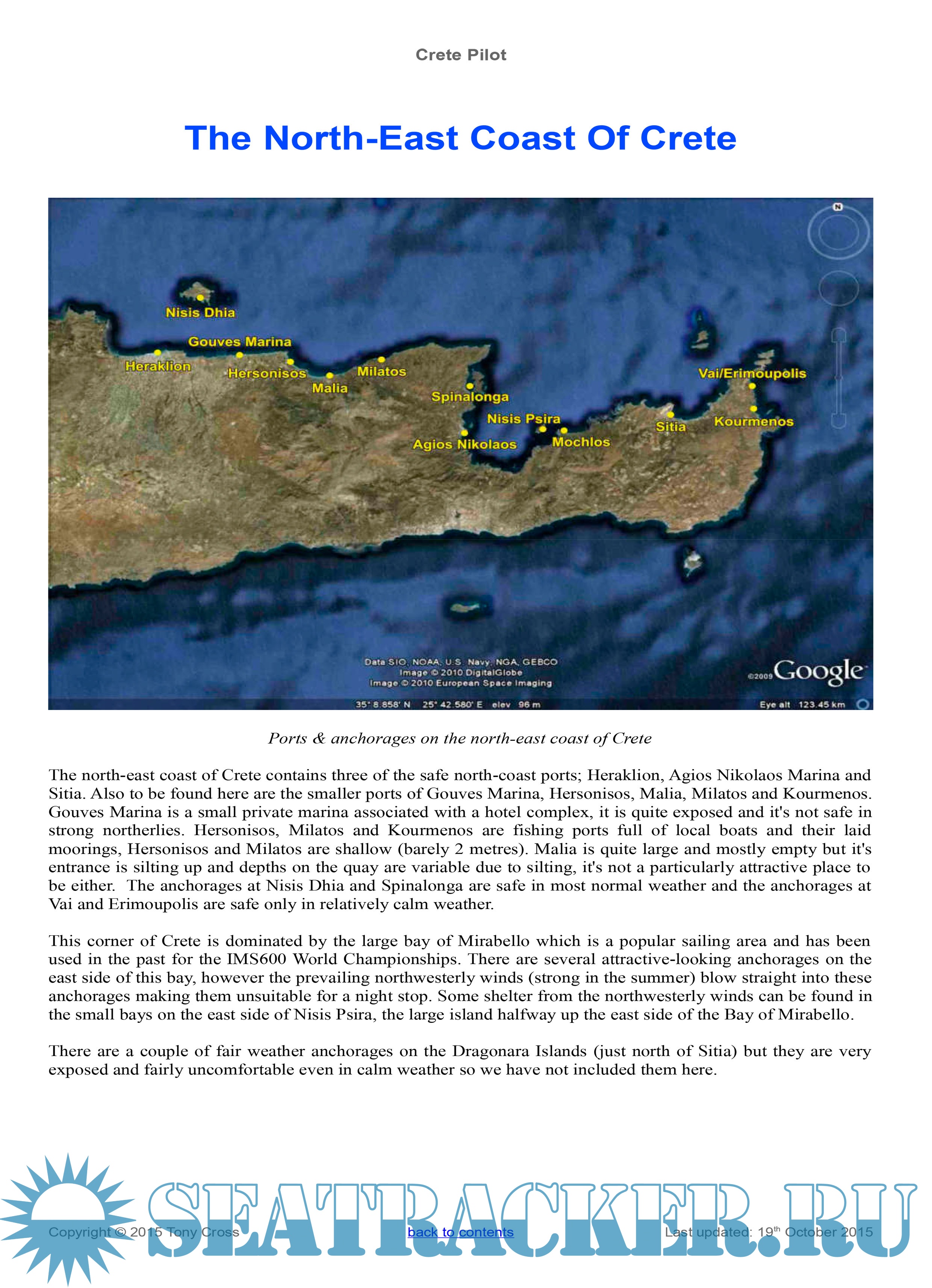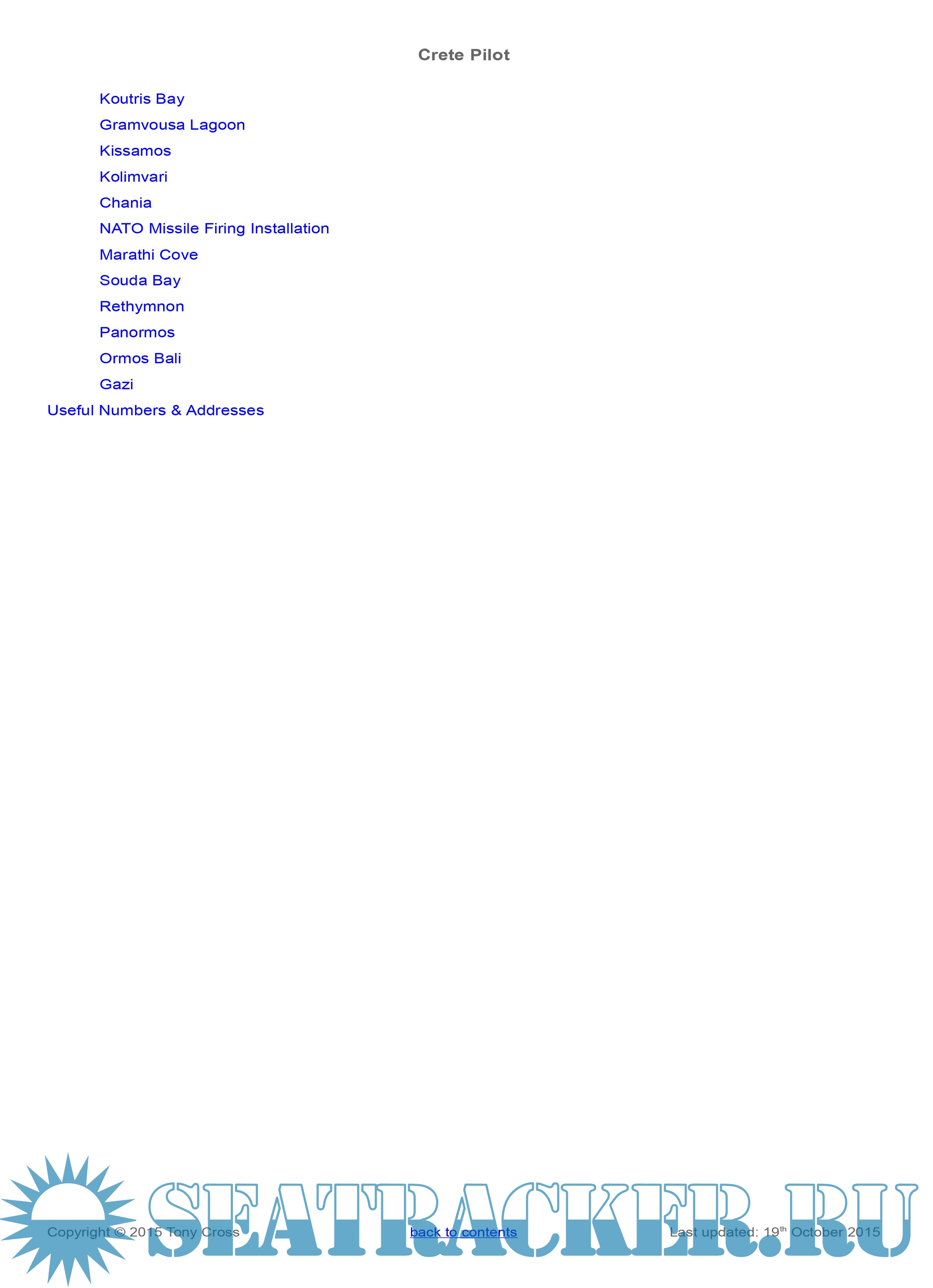 Description: This yachtsman's pilot for the Greek island of Crete was begun originally as a set of cruising notes following our trip around Crete in October and November 2007 in our 45ft sailing yacht “Little Roundtop”. Since that date the cruising notes have been gradually updated and added to as more ports and anchorages were visited, either by ourselves or by trusted close friends, and in 2010 it was felt that they were complete enough to be useful as a yachting pilot for Crete. The information in here is regularly updated, either through our own visits or by those of trusted friends, and the information in here is as up-to-date and as complete as we can make it.