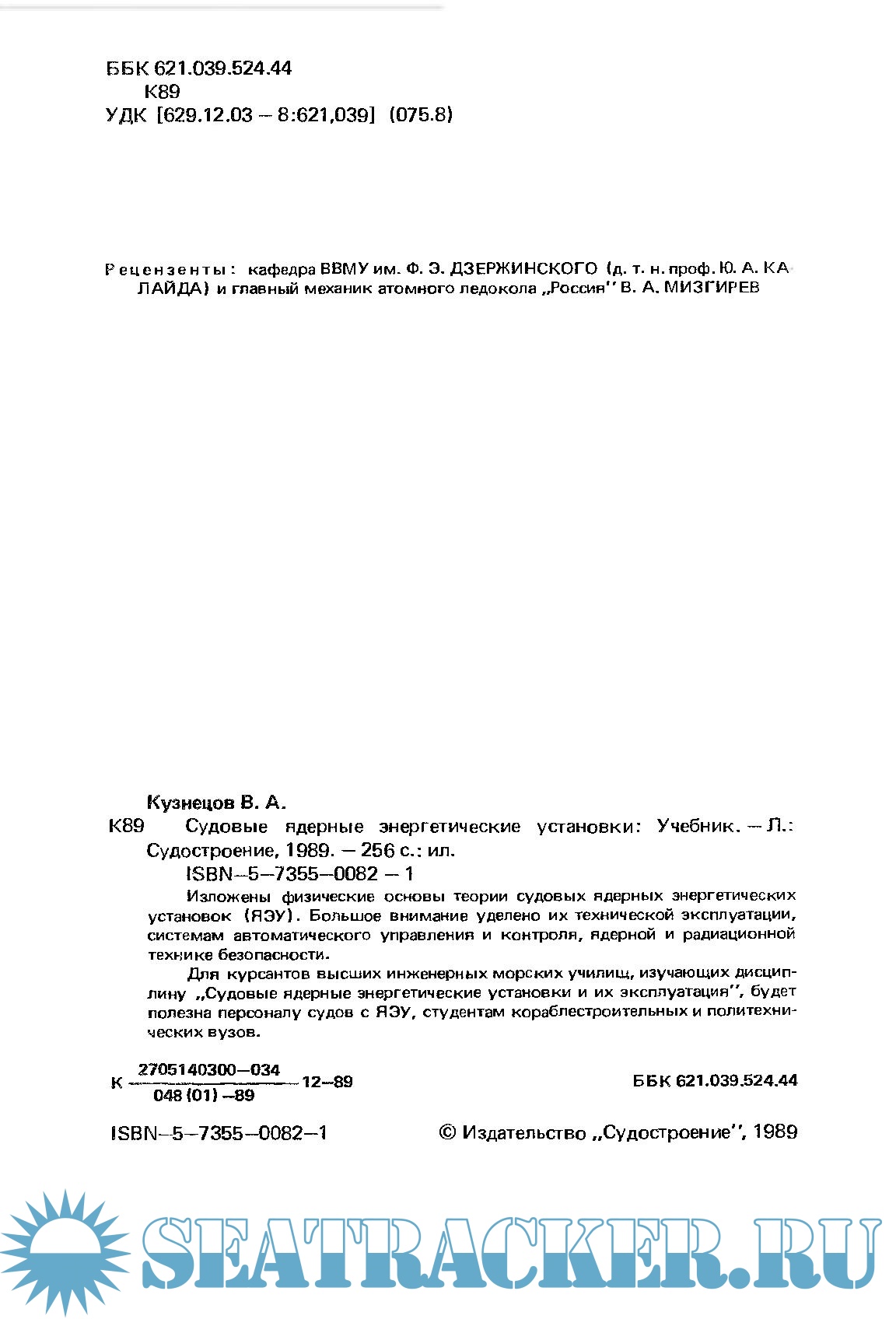Кузнецов В.А. Судовые ядерные энергетические установки, 1989.djvu