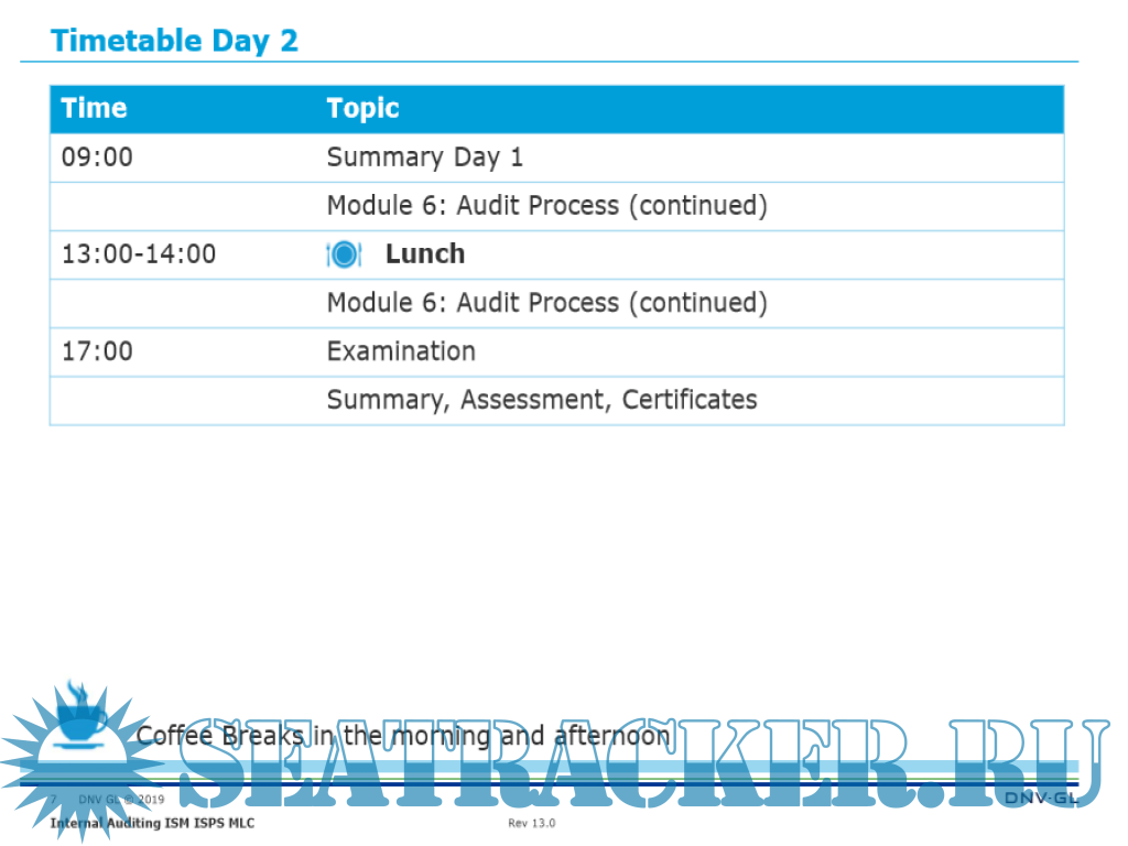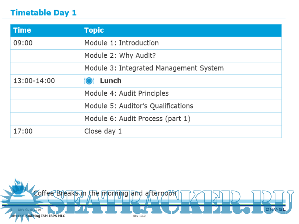 The course focuses on:ISM/ISPS/MLC audit and verification requirements