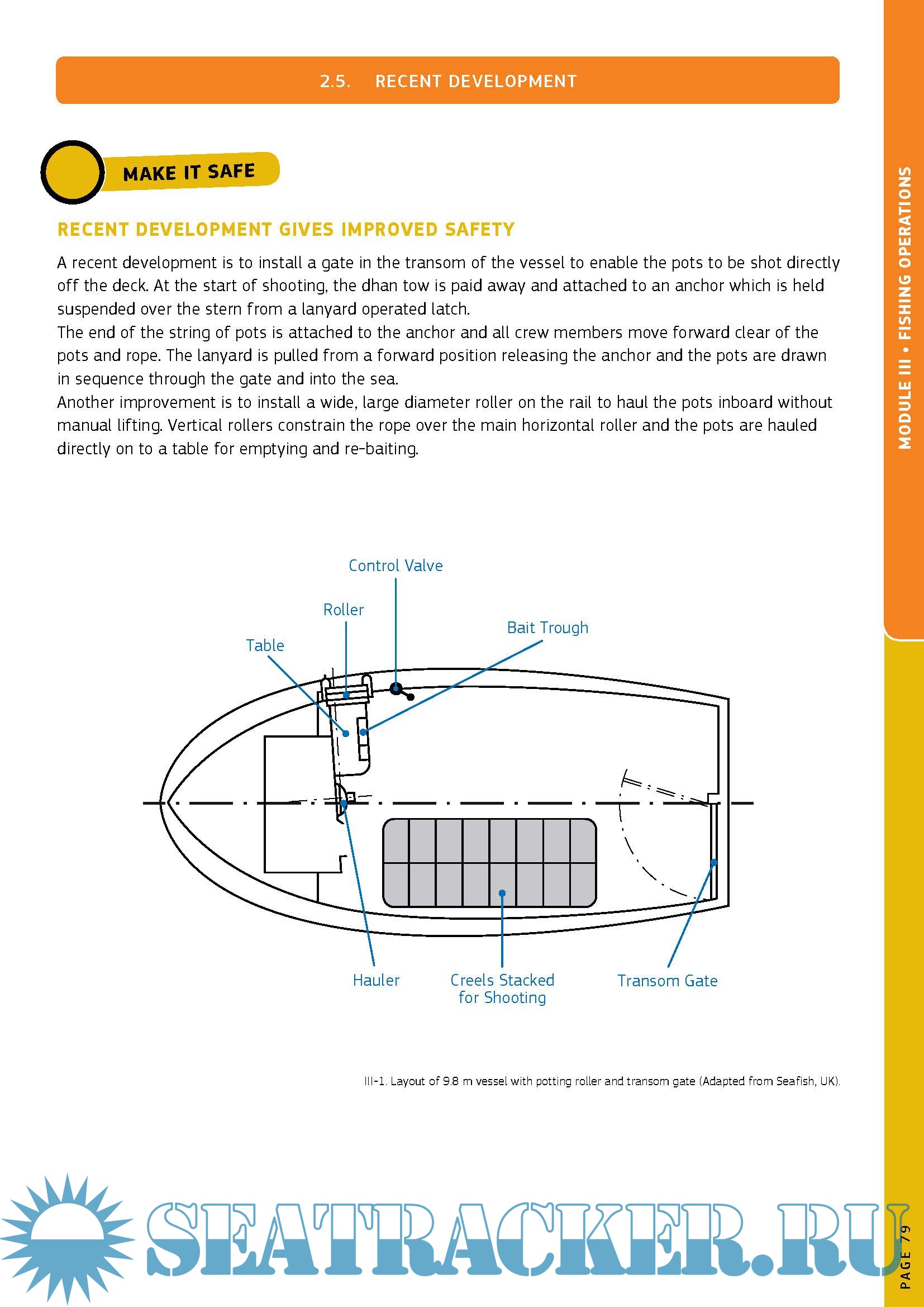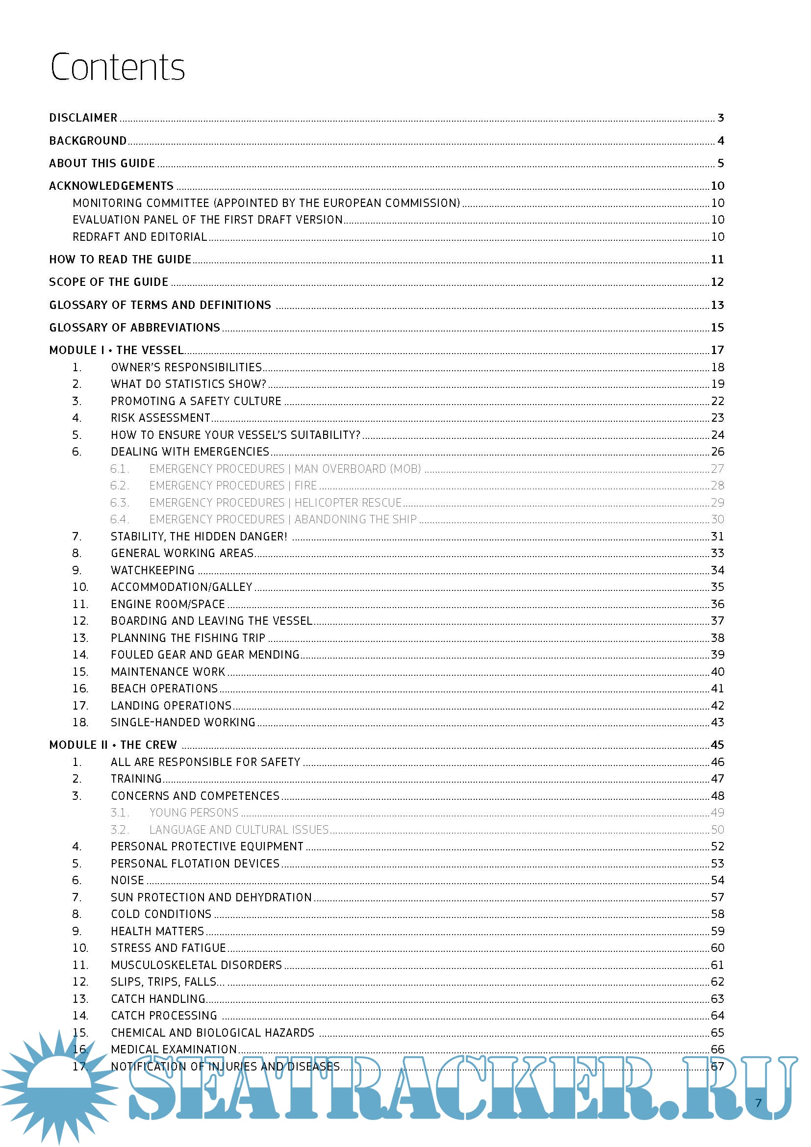 The different modules in the guide focus on key areas, notably the vessel, the crew, fishing operations, real case events, risk assessment and additional information such as on flotation devices, boat stability, first aid, work equipment and emergency drills. A glossary along with illustrations, photos and charts serve to highlight the important points in the guide, making it an extremely user-friendly reference.