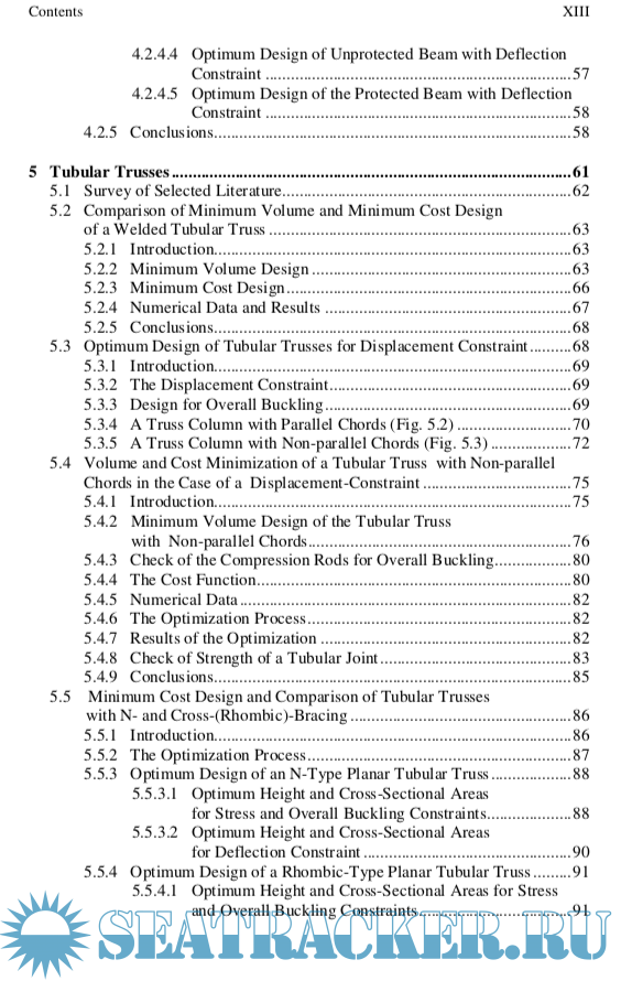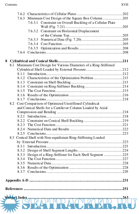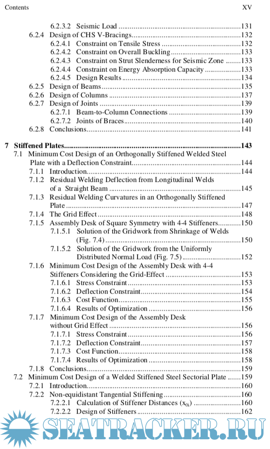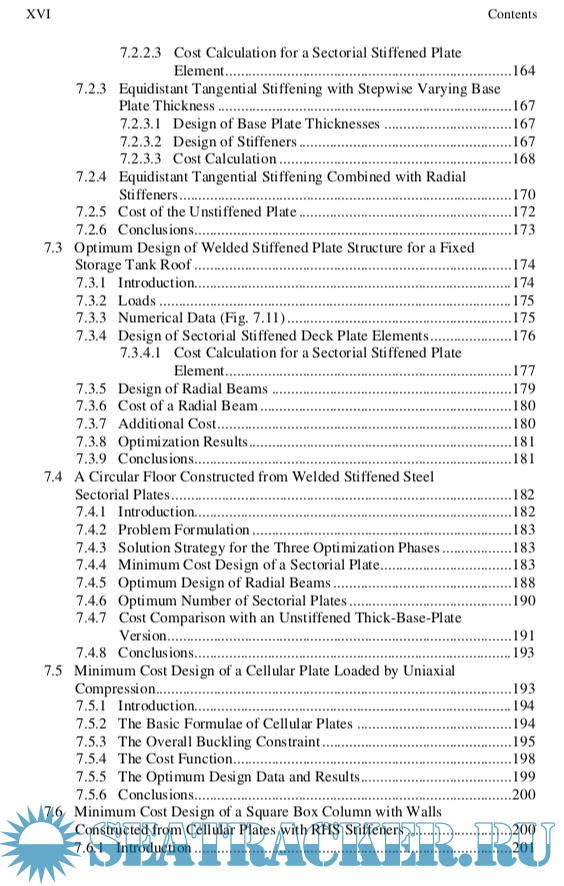 The following studies on the optimum design for minimum weight or cost can be brought into prominence: Chapter 4: fire design of a welded box beam, Chapter 5: transmission line tower constructed as a welded tubular truss, Chapter 6: earthquake-resistant design of braced frames, Chapter 7: storage tank roof constructed from welded stiffened sectorial plates, Chapter 8: ring-stiffened cylindrical and conical shells.