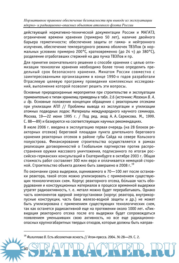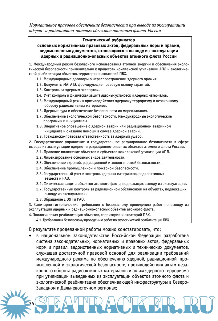 Нормативное правовое обеспечение безопасности при выводе из эксплуатации ядерно- и радиационно-опасных объектов атомного флота России