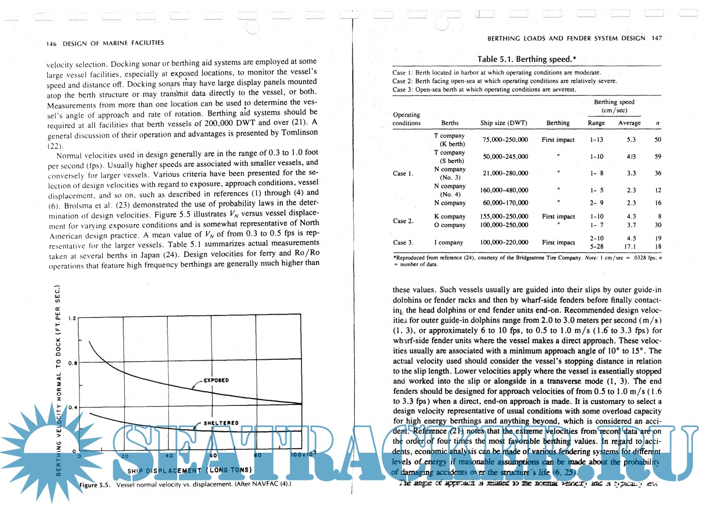 This book is a useful addition to the lore of the marine engineer who designs shoreside or offshore facilities for ships. It brings together in a single source a synopsis of the vast number of detailed considerations that face the designer who must fashion a connection between the moving object, the ship, in its flotation medium of waves, currents, and winds, and the fixed structures at ports and docks.