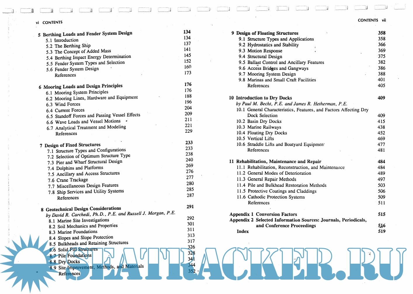 Description: Written to fill a niche in the general literature on port and harbor engineering, this book is intended to give the practicing engineer background information needed to design port and harbor structures for the berthing, mooring, and repair of vessels. It provides a thorough introduction and, as such, should also prove useful to port authority engineers, marine terminal operators, marine contractors, port planners, and others with an adequate technical background and the need to understand the principles of marine structures design.