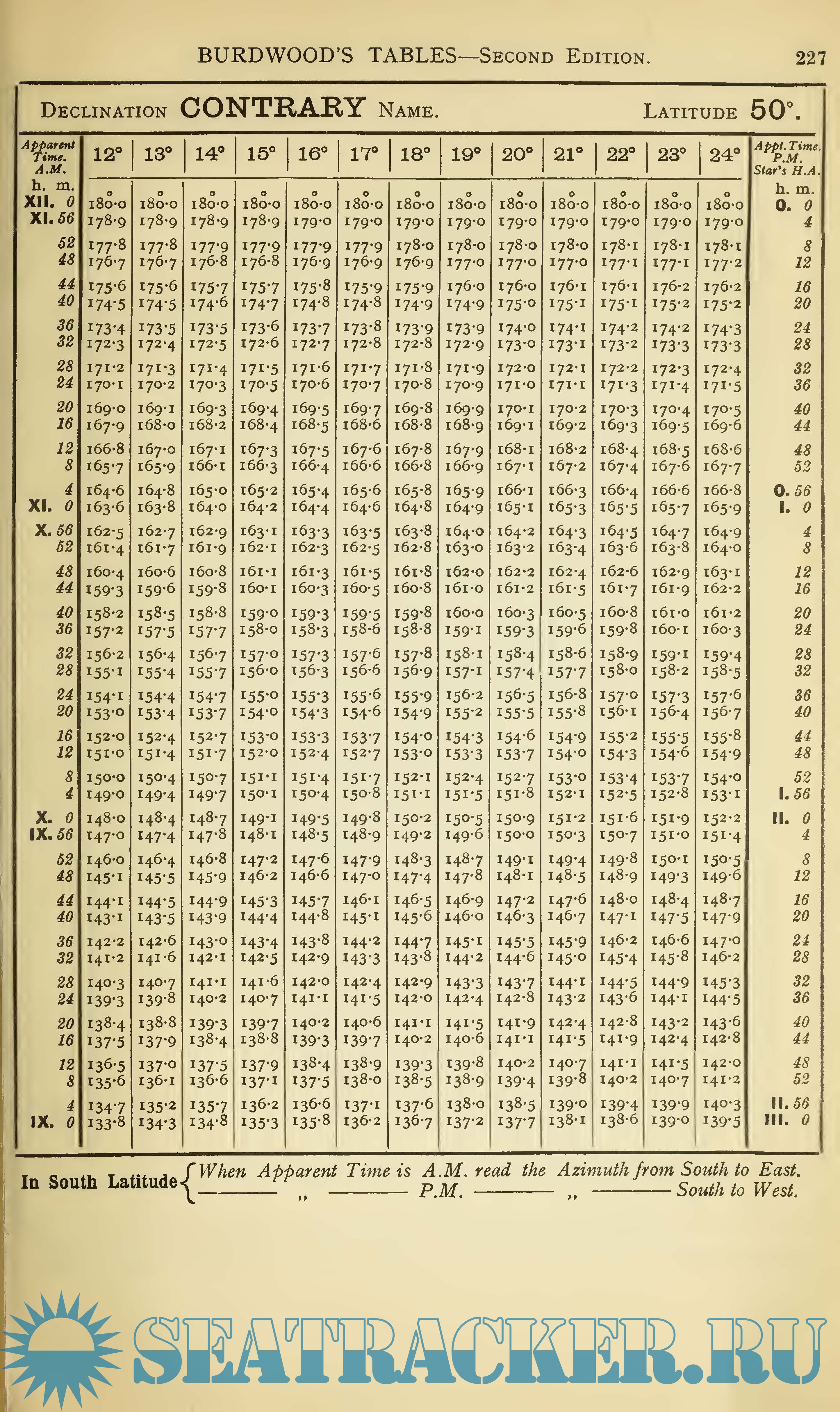 Burdwood's Tables Second Edition (DAVIS. 2) - Sun's True Bearing or Azimuth Tables