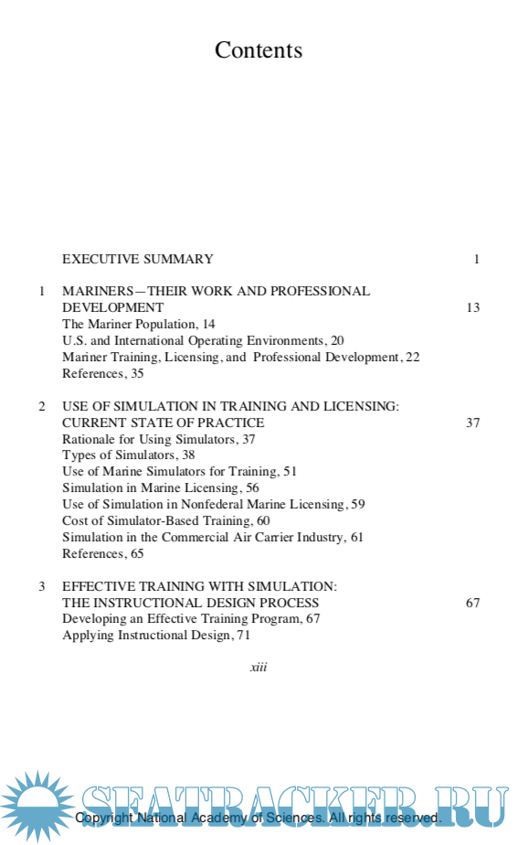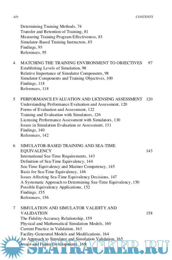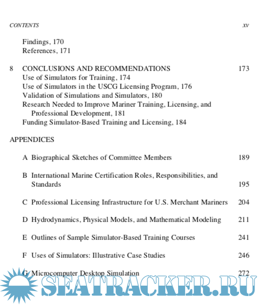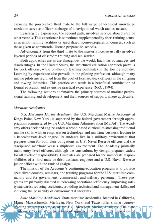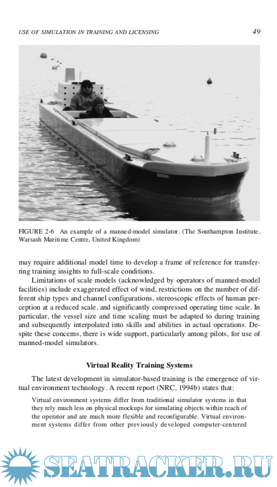 Year: 1996 Language: english Author: Comittee on Ship-Bridge Simulation Training Genre: Reference book Publisher: National Academy of Sciences ISBN: 0-309-05383-8 Format: PDF Quality: eBook Pages count: 303 Description: The professional performance of merchant mariners, marine pilots, and tow- ing vessel operators has been brought to public attention by major marine acci- dents and the resulting loss of life, oil spills, and damage to marine ecosystems. Intense public and congressional interest in the safety of marine transportation and the qualification of deck officers and pilots was stimulated by the Exxon Valdez grounding and oil spill in Prince William Sound, Alaska, in 1989. National interest has been sustained by newsworthy marine accidents along the nation’s seacoasts involving all major categories of commercial vessels—cargo ships, tankers, coastwise and inland towing vessels, and passenger vessels. Faulty human performance has figured prominently in most of these accidents. The U.S. Congress, in the Oil Pollution Act of 1990 (OPA 90 P.L. 101-380), recognized the potential value of simulation in training deck officers and pilots of vessels transporting oil and hazardous substances in U.S. waters. The act directed the U.S. Coast Guard (USCG) to determine the feasibility and practical- ity of mandating simulator-based training. Among the recommendations of a subsequent USCG internal study, Licens- ing 2000 and Beyond (Anderson et al., 1993), were recommendations that the agency do the following: • • assess computer-based training and testing systems for possible application to mariner training and licensing, and conduct research and development for microcomputer desktop training programs.