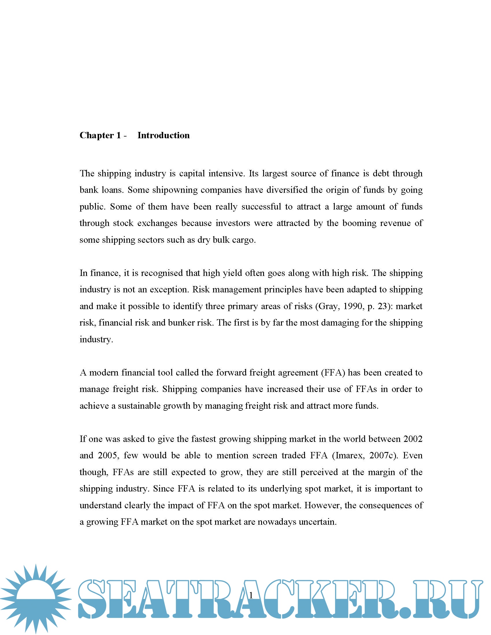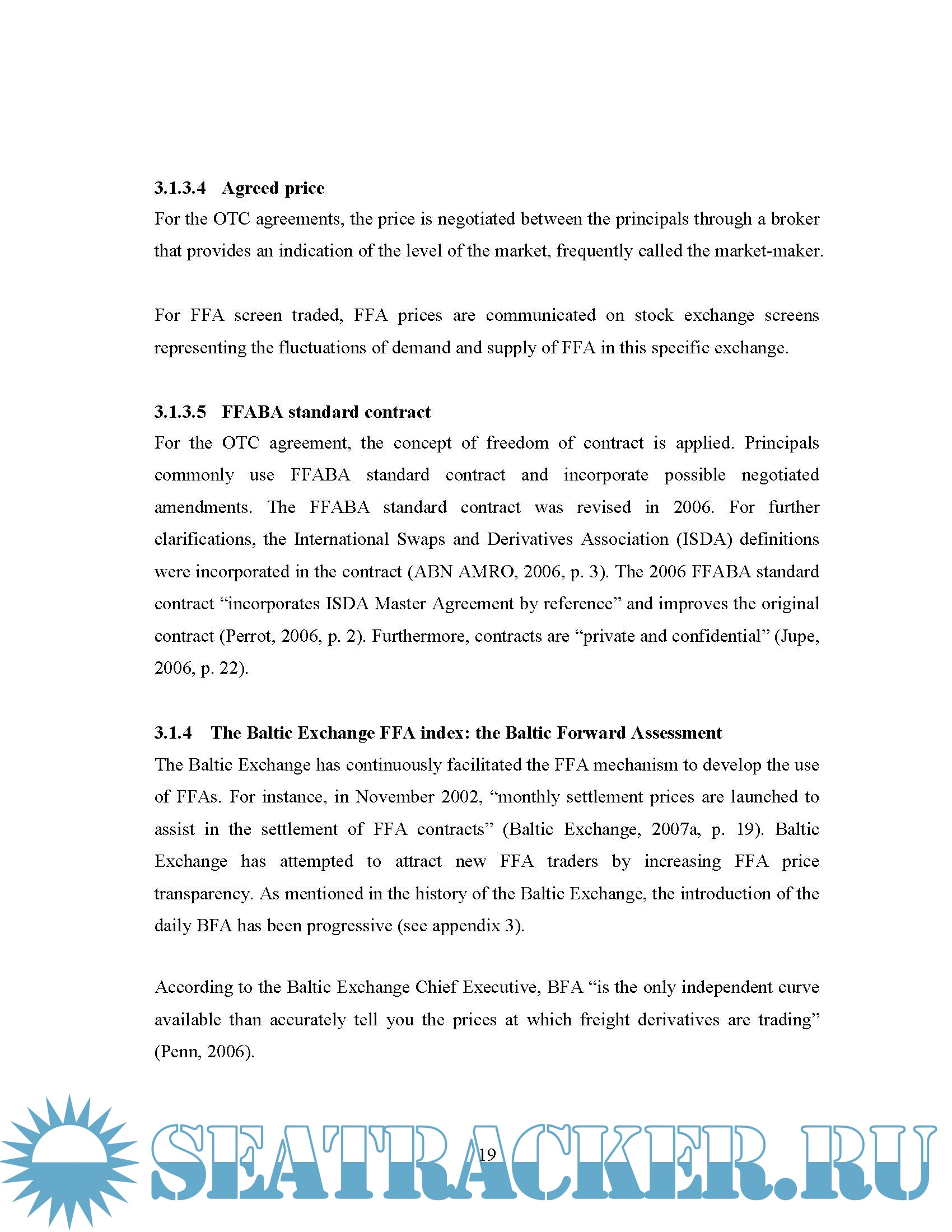 Also, the concept and practices of FFAs are examined along with a study of the FFA market: its developments, its participants and its state of pure and perfect competition.