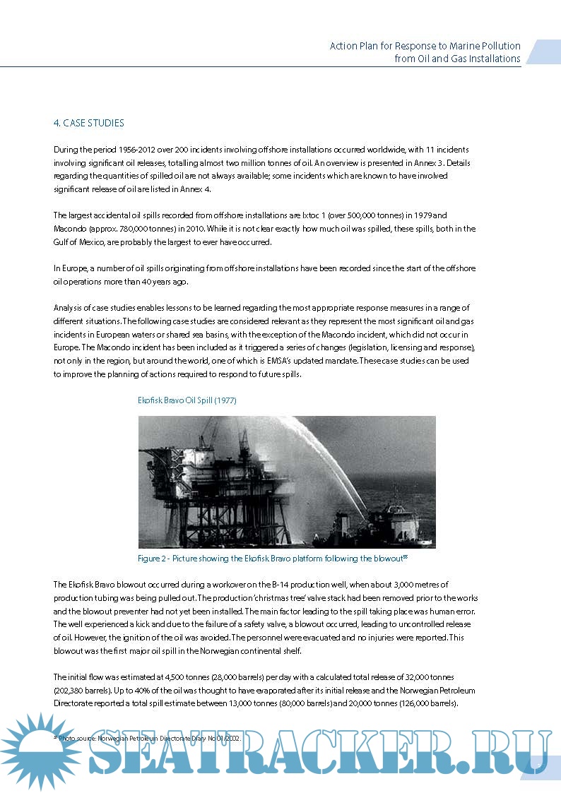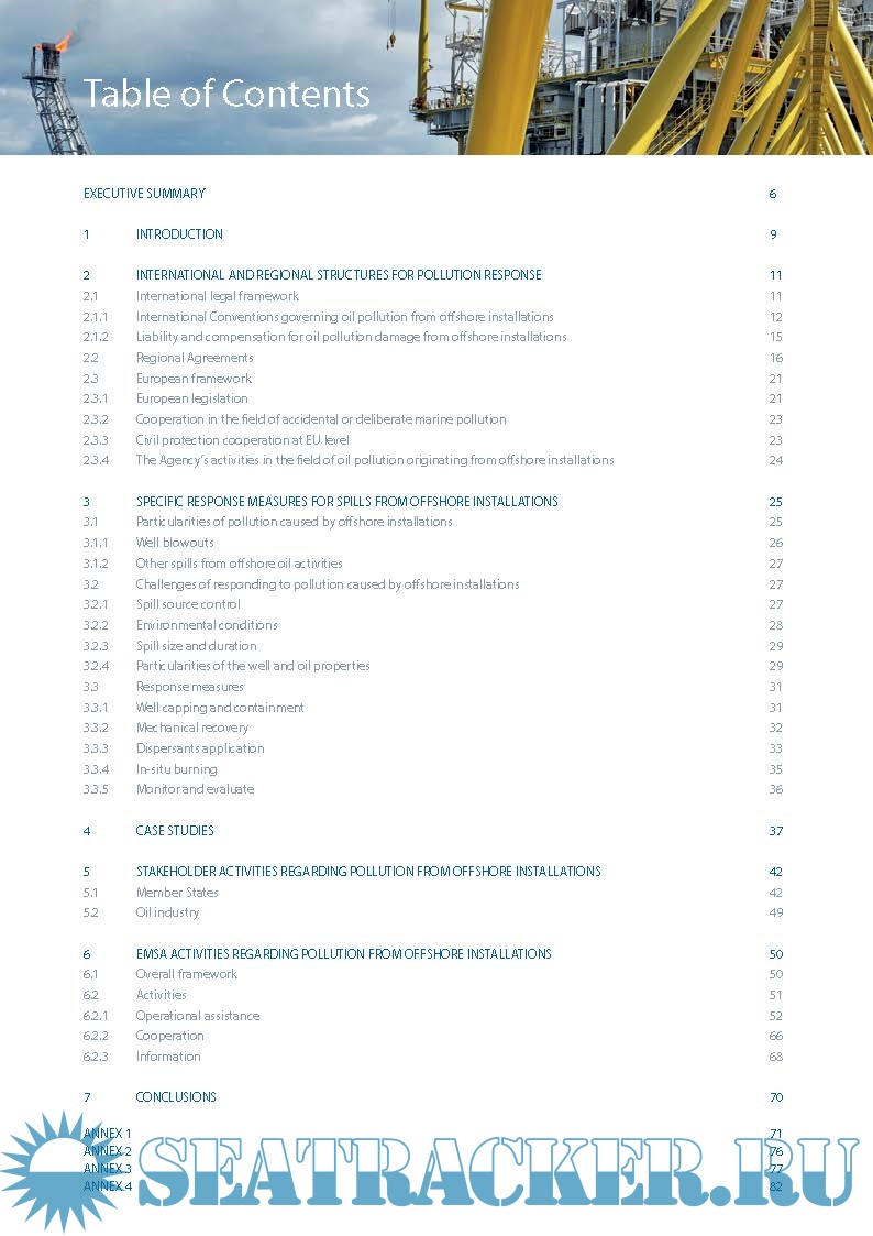 - information regarding particularities and challenges of pollution caused by offshore installations and response measures to marine pollution caused by such installations, including some case studies;