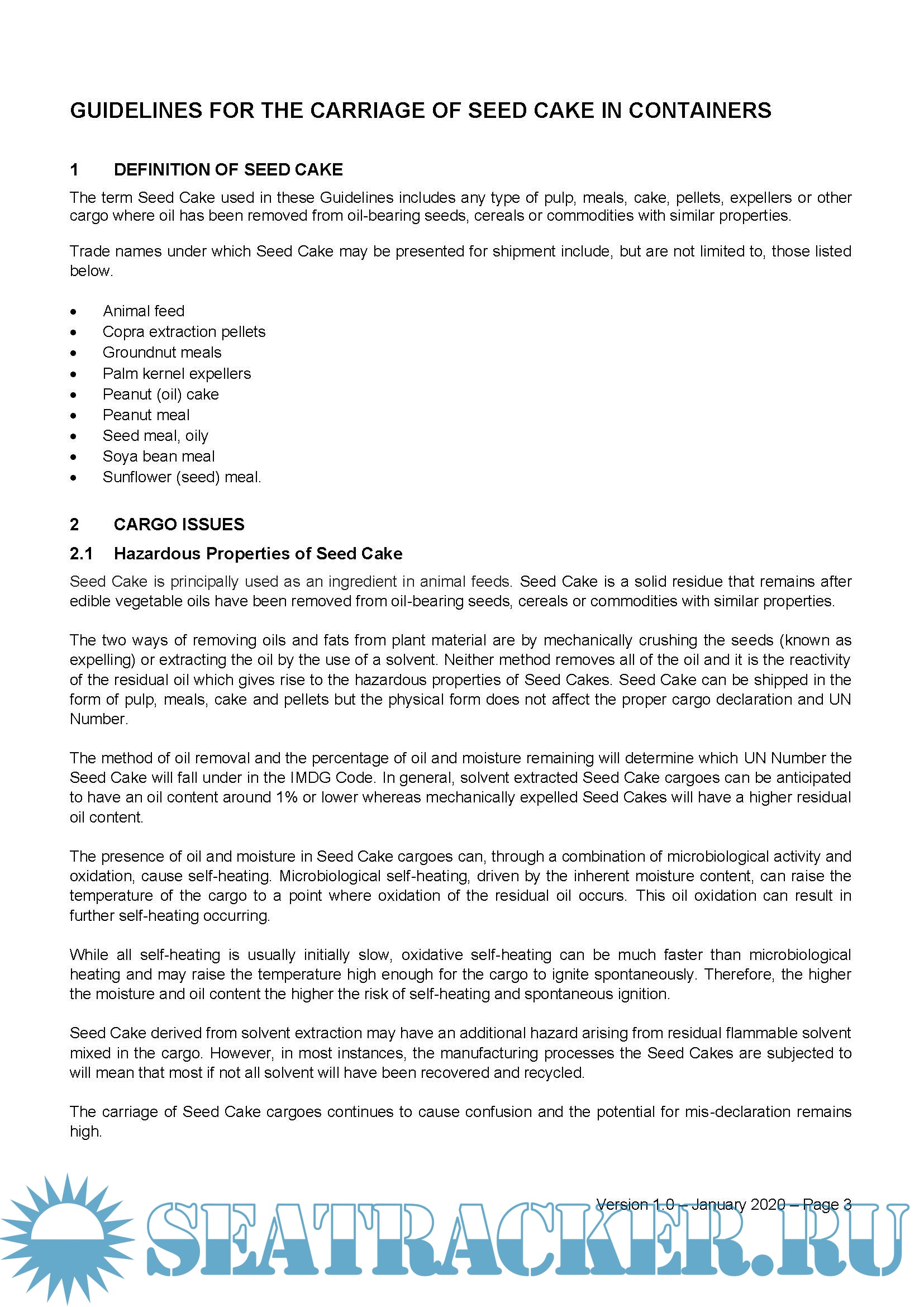 Guidelines for the Carriage of Seed Cake (including Seed Meal) in Containers, Version 2.0 - CINS…