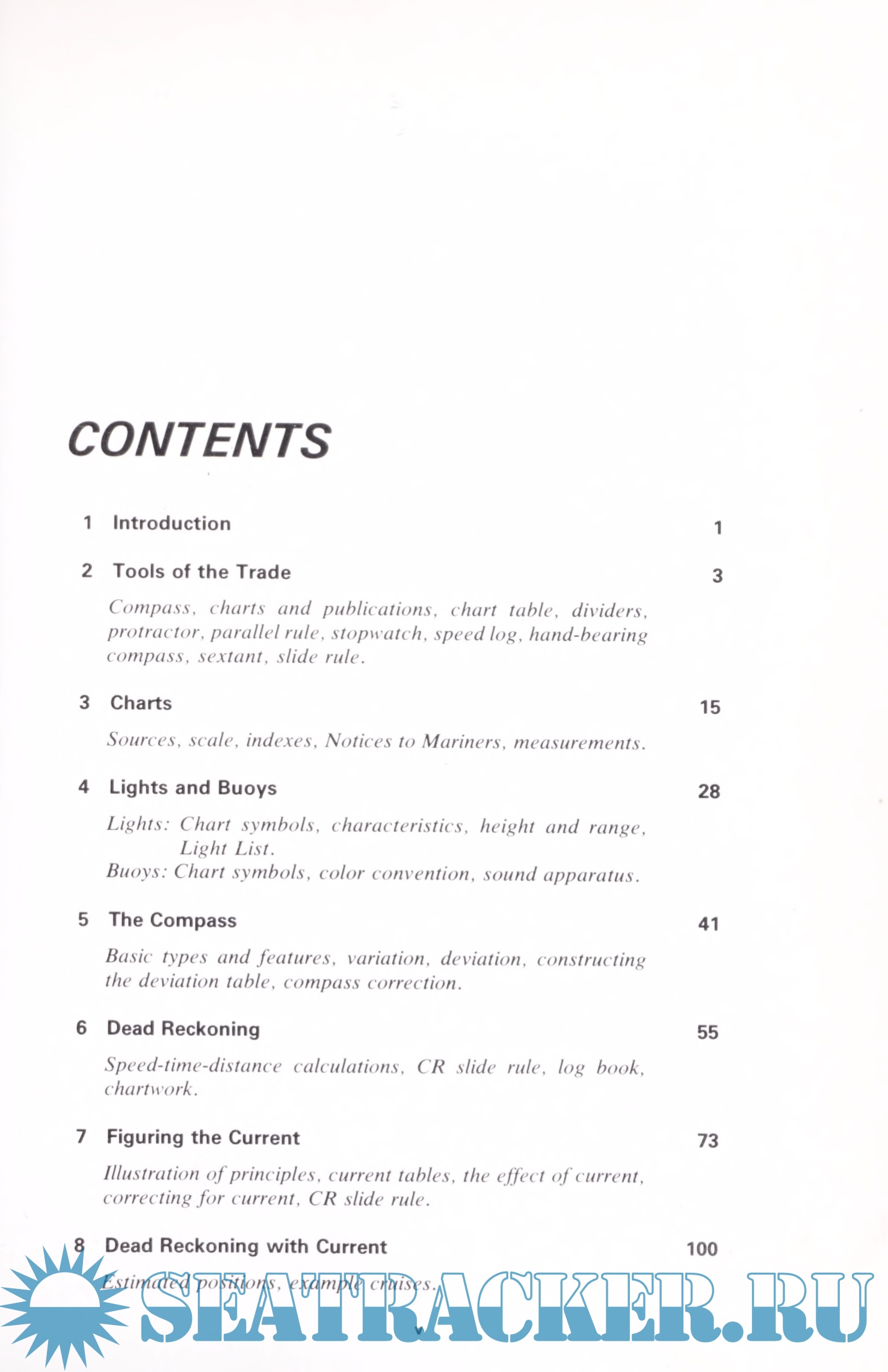 More than 150 illustrations show equipment, details of charts, and course plottings. A removable practice chart, incorporating actual features and names from standard navigational charts, can be conveniently photo- copied to use with the book's generous selection of sample problems. Sections to these problems, refined in author’s courses on piloting, are p vided in an appendix. Also included list of dealers who supply char publications, and equipment.