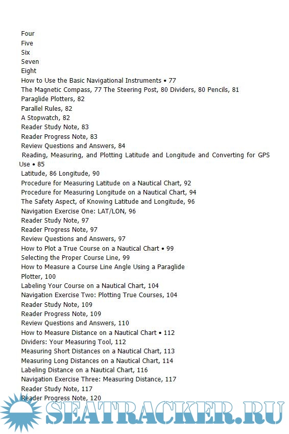 Year: 2003 Language: english Author: Larkin F.J. Genre: Manual Publisher: Sheridan House ISBN: 1574091697 Format: EPUB Quality: eBook Pages count: 299 Description: We are living in an age where a single idea can change traditional methods, transform whole industries overnight, and open the door to possibilities that were beyond our dreams only a short time ago. Such is the case with the Global Positioning System (GPS). GPS has trans-lormed navigation. Today, with an inexpensive little black box, in just a few seconds, you can determine your exact position on the earth’s surface to within 35 feet or less. Sailors who navigated the seas over the centuries with only a few mechanical instruments and some crude charts would have perceived GPS as nothing less than a miracle. The tedious calculations associated with navigation are now reduced to the press of a button — and all of this power is available to every boat operator. Currently, many boat operators are switching to GPS navigation. The available GPS systems range from large integrated setups costing in the thousands of dollars down to a simple handheld set for only a few hundred dollars. In Chapter 12, you will find criteria that will help you evaluate all of the different types of available GPS sets and options and make the best selection for your particular boating needs. One of the unfortunate aspects of this GPS navigational trend is that few boat operators actually know how to use their sets safely and accurately. If you are one of these GPS owners, this book was written for you. It will help dispel much of the technical jargon and confusion that surrounds GPS. Most GPS sets come bundled with so many “bells and whistles” that it could take years to learn how to use all of them effectively — especially for users who have no prior experience with electronic navigation systems and basic navigation techniques. Fortunately, only a few significant GPS functions provide 95 percent of the navigational benefits. By focusing on these basic navigation functions, you can learn to navigate your boat with GPS like an old pro in a very short time. Those other nice-to-have capabilities of your GPS can then be learned at your leisure at a later time. GPS operating manuals can easily confuse a user because they assume so much prior knowledge of navigation. GPS manuals are not intended to be navigation texts. They show you how to press the right button, but not how to put the GPS functions together into a working navigational process. This book provides the necessary coastal navigation background information to help you quickly understand how to use a GPS set to navigate your boat effectively. Written in an easy-to-understand style with many illustrations and examples that enhance your learning process, this book is a valuable text. Many chapters provide questions and answers that test your comprehension and progress, and a multiple-leg navigational exercise is threaded throughout various chapters to build up your navigational skills and confidence as you are exposed to each practical navigation technique and new GPS topic. To get the maximum benefit, read this book chapter by chapter from the beginning. Don’t jump ahead. Perform each requested task in sequence. Don’t move on to the next chapter until you fully understand all of the information that has already been presented. (This is also true of your GPS operating manual. Stay focused on the one topic that you are directed to read in the manual.) Each chapter of this text is formulated to build on previous subject matter to form the steps for navigating safely and effectively with a GPS system. Complete all of the navigation practice exercises. Use the worksheets and logs for all of your computations. In doing so, in a short while, you will become a competent GPS navigator.