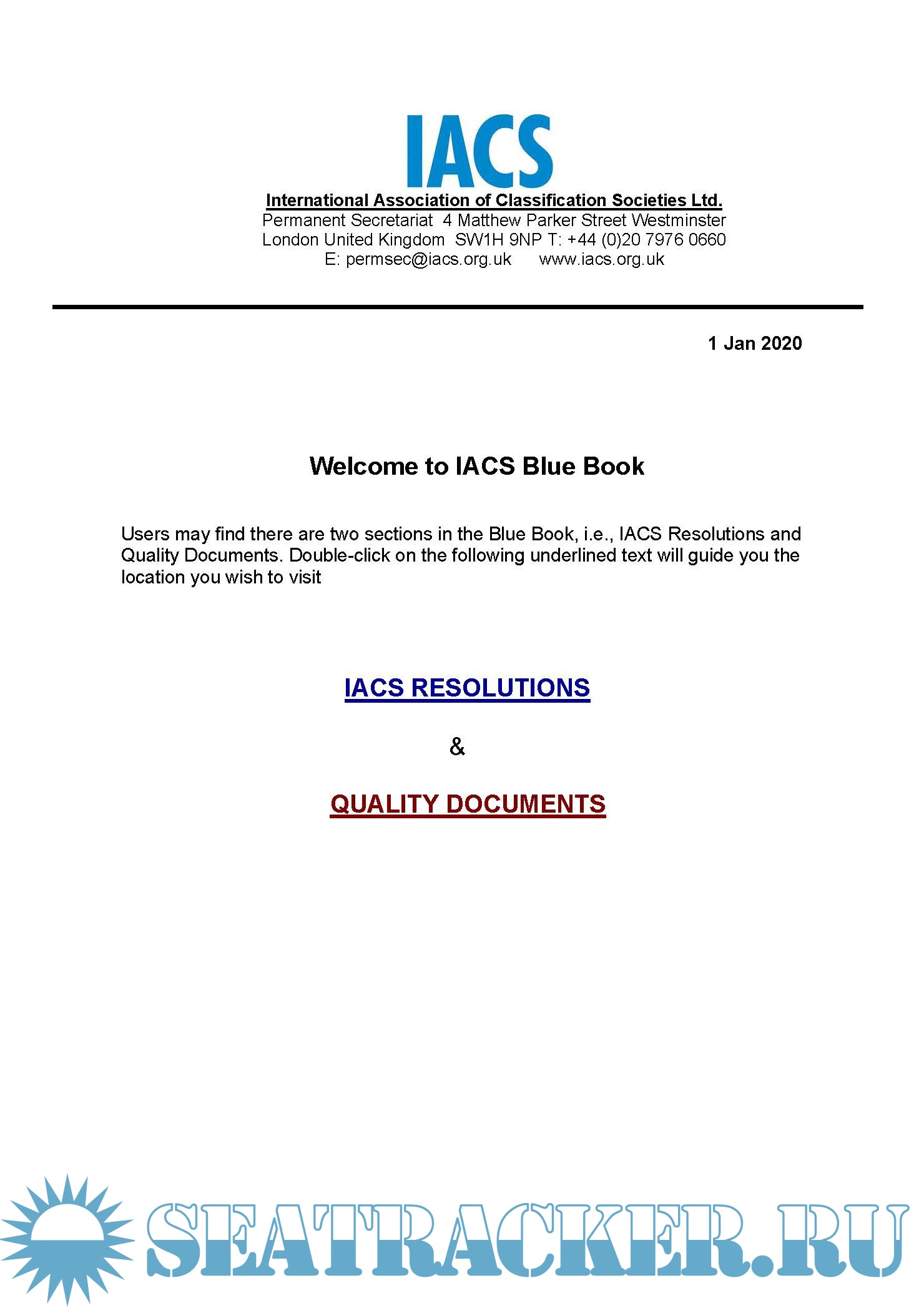 Description: "2020 Blue Book" contains the latest adopted IACS publications as on 1 January 2020 as well as previous revisions of IACS publications and historical data. The Blue Book is updated and published once a year only, next Blue Book will be issued in January 2021.