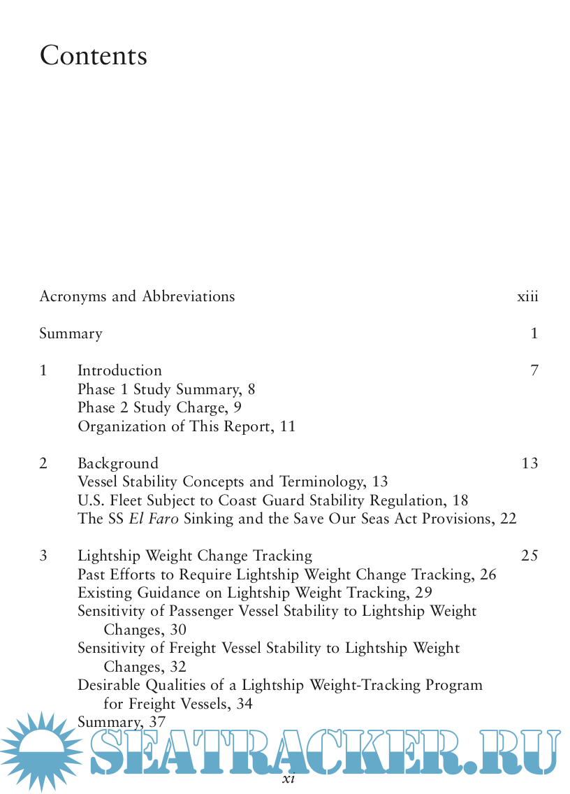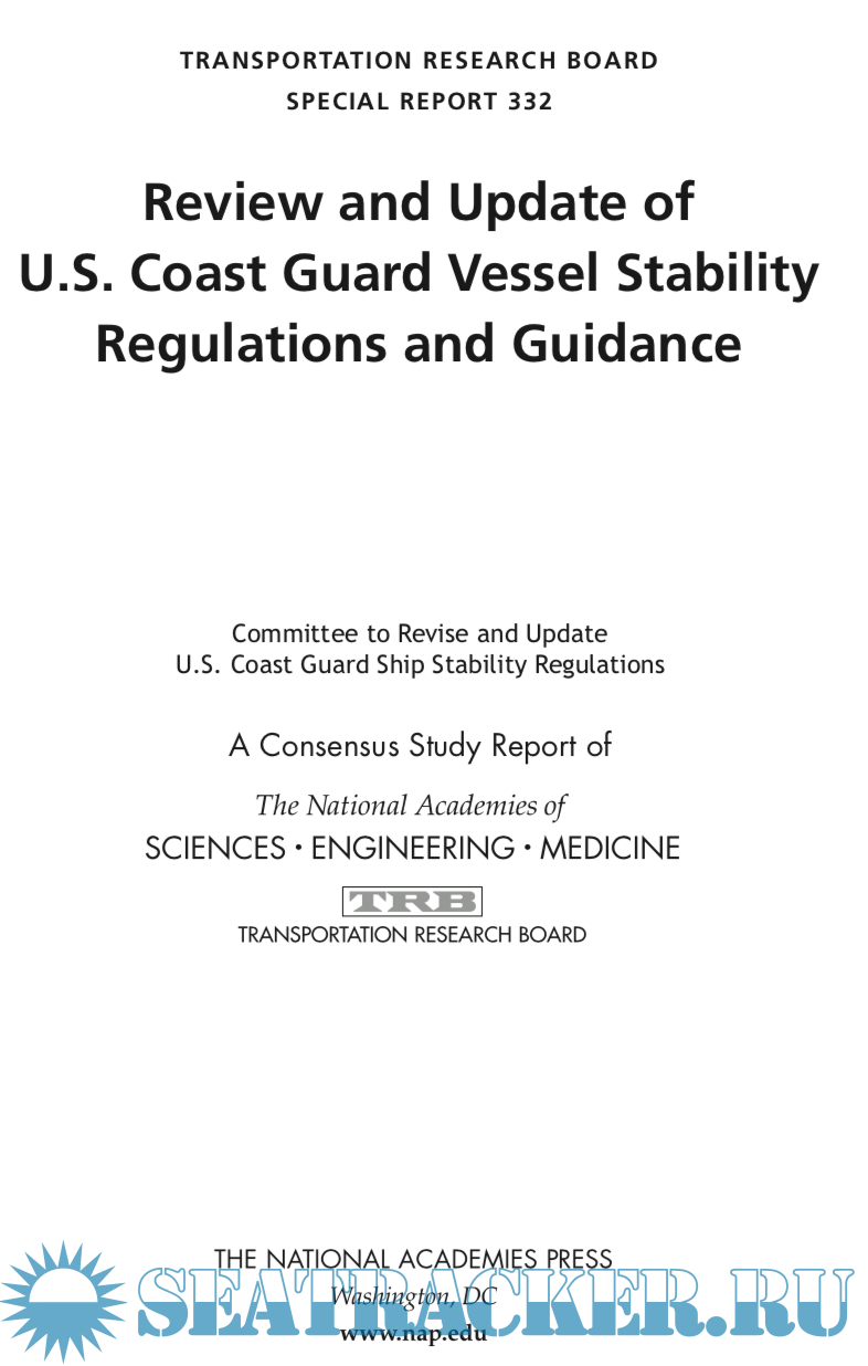 Year: 2019 Language: english Author: Eugene A. van Rynbach et alli Genre: Guide Publisher: National Academy Press ISBN: 0-309-49721-3 Format: PDF Quality: eBook Pages count: 176 Description: In September 2017, the U.S. Coast Guard (USCG) Office of Design and Engineering Standards asked the National Academies of Sciences, Engineer- ing, and Medicine (the National Academies), through the Transportation Research Board’s (TRB’s) Marine Board, to review USCG regulations and policy documents that establish stability requirements for U.S. flag vessels. The USCG has the authority to inspect commercial vessels to ensure their safety under 46 U.S. Code Chapter 33. The associated regulations in 46 Code of Federal Regulations Chapter I contain requirements for vessel stability that apply to certain vessels used in commercial passenger and cargo service. Subchapter S is generally applicable to all vessels; Subchapter T applies to certain small, inspected passenger vessels; and Subchapter C applies to certain uninspected vessels (primarily commercial fishing industry vessels). The USCG asked for the review to identify and suggest options to make and keep stability requirements current, align them better with interna- tional standards, and improve their consistency and clarity. The National Academies formed a study committee comprised of members with expertise in naval architecture, vessel design and construction, regulation and inspec- tion activity, safety standards development, and marine transportation and vessel operations.
