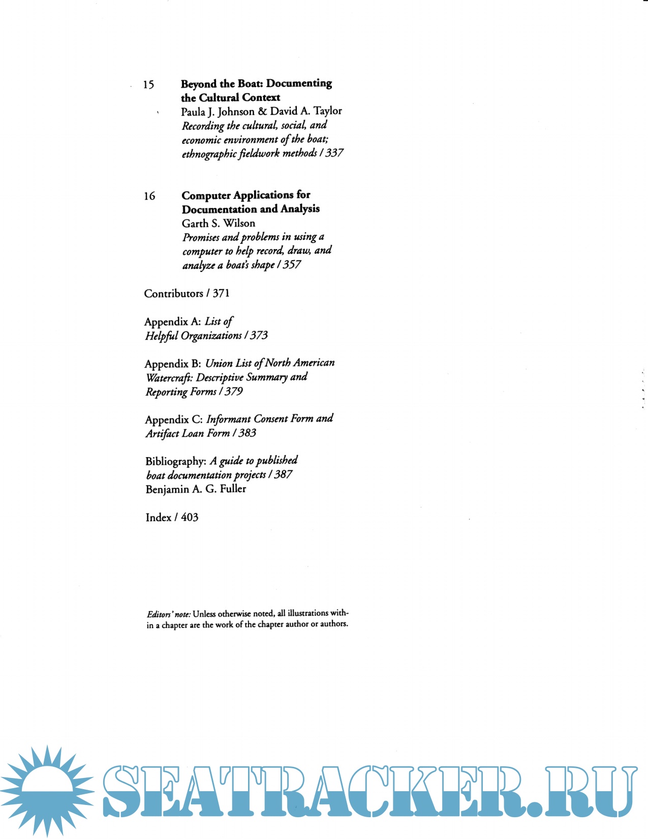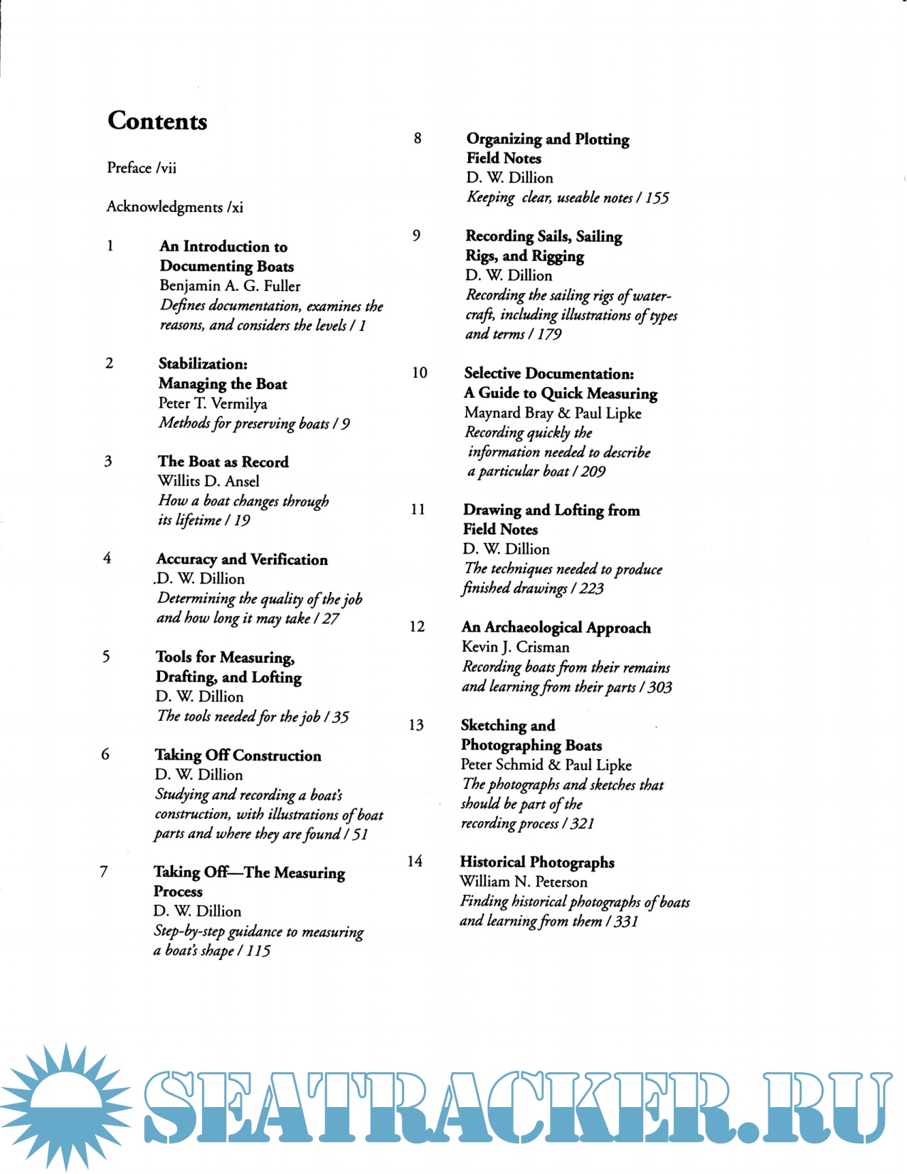 Year: 1993 Language: english Author: Lipke P. Genre: Manual Publisher: Museum Small Craft Association ISBN: 0-942063-17-1 Format: PDF Quality: Scanned pages Pages count: 430 Description: A manual for the many phases of historic watercraft documentation. Includes chapters on lines-taking, taking off construction details, photographing and drawing watercraft. Also included are special sections on collecting ethnographic, historical, and archaeological information about historic watercraft.
