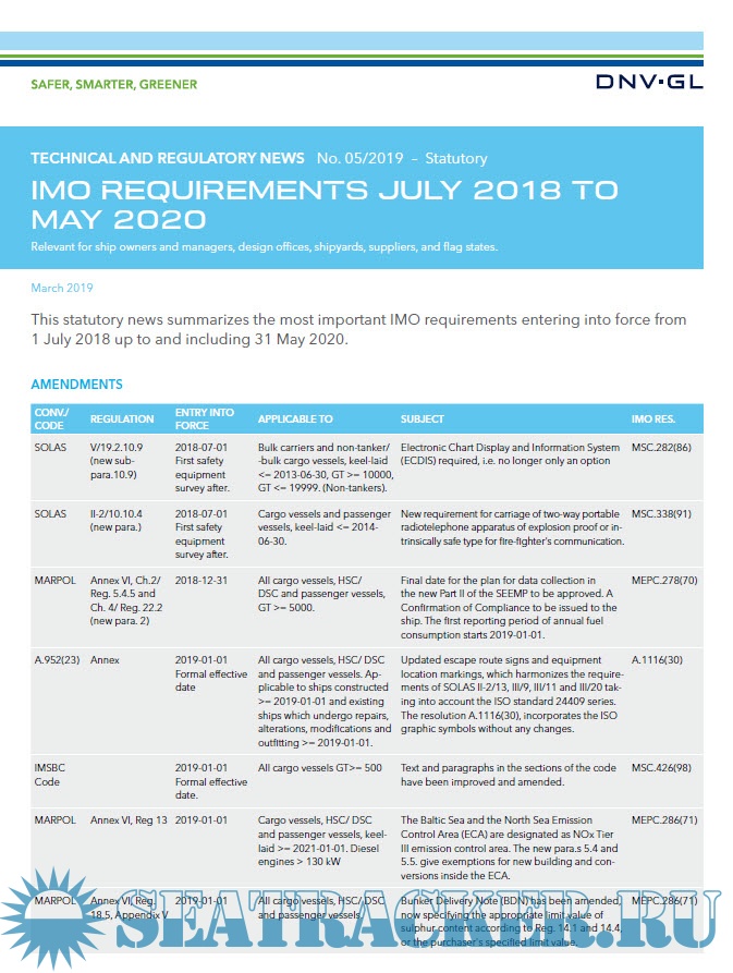 Additional info: The paper summarizes the most important IMO requirements entering into force from 1 July 2018 up to and including 31 May 2020.