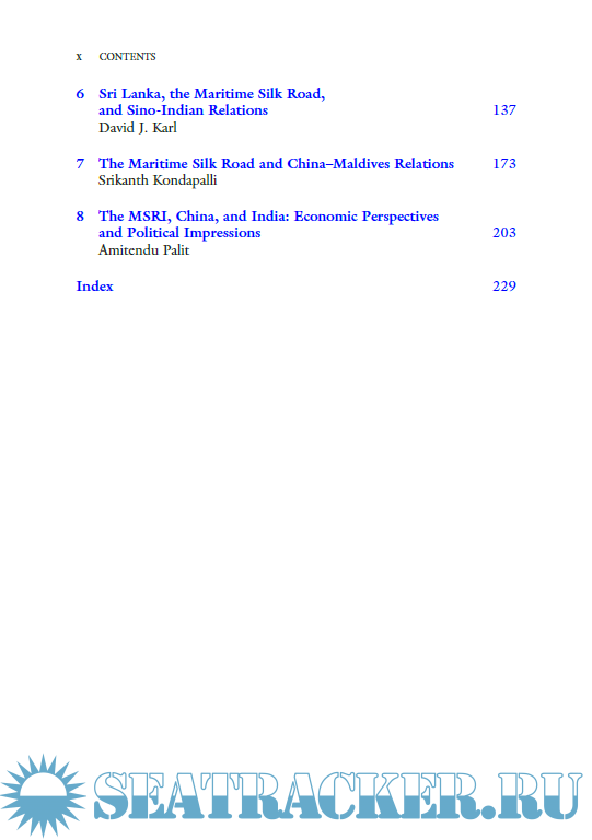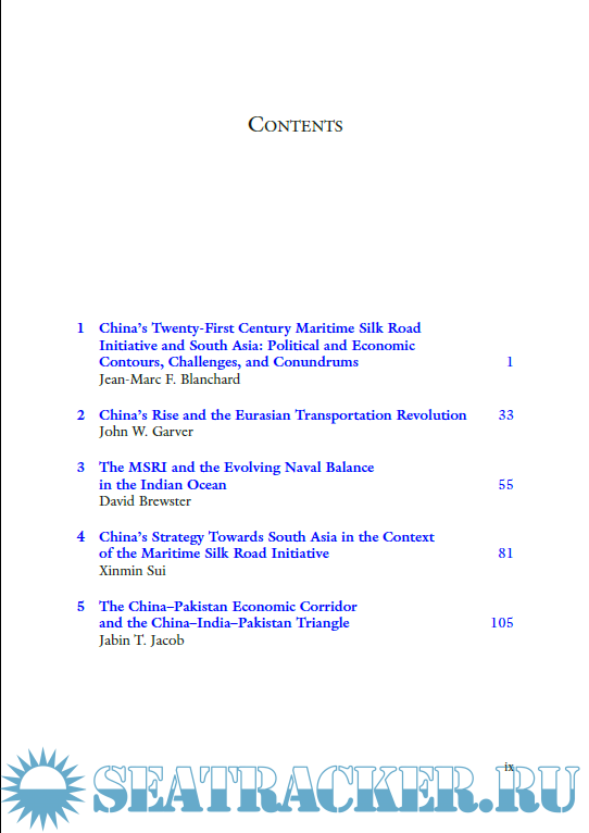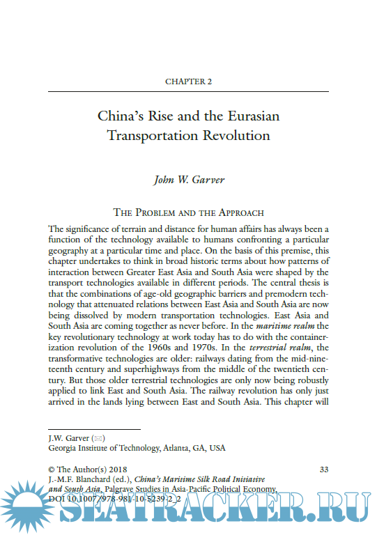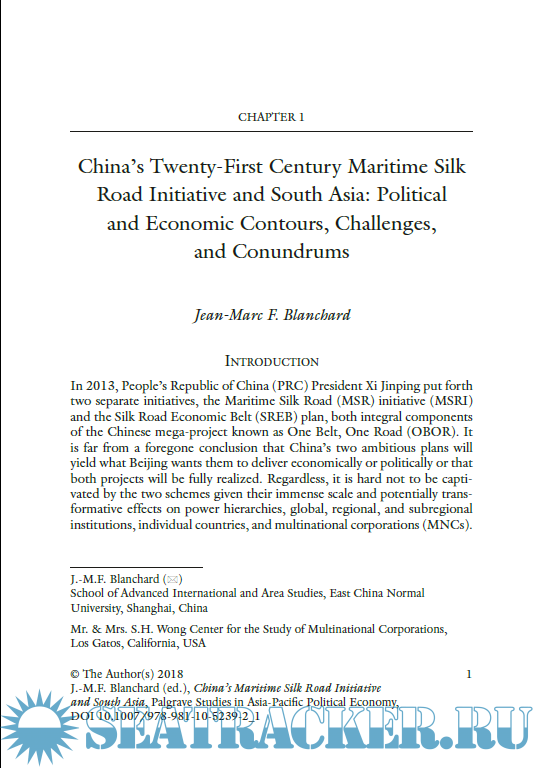 Year: 2018 Language: english Author: Jean-Marc F. Blanchard Genre: Technical book Publisher: Palgrave Edition: 2018 ISBN: 978-981-10-5239-2 Format: PDF Quality: eBook Pages count: 249 Description: This book brings together a diverse range of responses to China's Marine Silk Road Initiative, which proposes to redraw the map of Asia, particularly South Asia. China’s 21st Century Maritime Silk Road Initiative (MSRI) is a massive scheme to connect wide swaths of East, Southeast, South, and West Asia through a dense web of interconnected hard and soft infrastructure involving ports, roads, logistics facilities, special industrial zones, and free trade and investment agreements. This book will be invaluable for students of Chinese foreign security and foreign economic policy, those interested in South Asia including Indian foreign security and economic policy as well as Indian relations with China, those attentive to international economic developments in East and South Asia, and those interested in the political and economic situation in specific MSRI participant countries such as Pakistan, Maldives, and Sri Lanka as well as their political and economic relations with China.