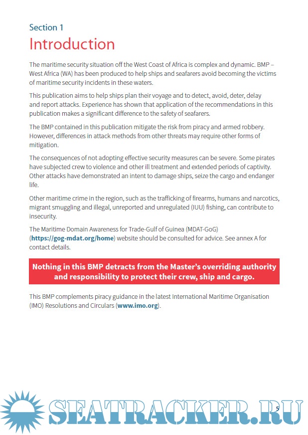 Description: Amid a complex and dynamic maritime security situation in West Africa, a new publication provides Best Management Practices to Deter Piracy and Enhance Maritime Security off the Coast of West Africa (BMP- West Africa) including the Gulf of Guinea.