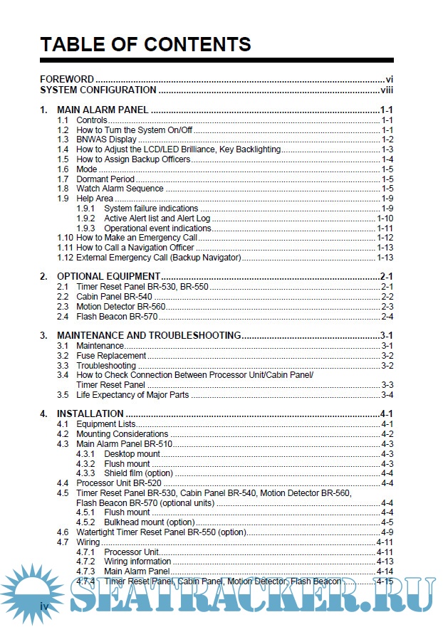 Furuno Operator's Manual Bridge Navigational Watch Alarm System (BNWAS), Model BR-500 - FURUNO…