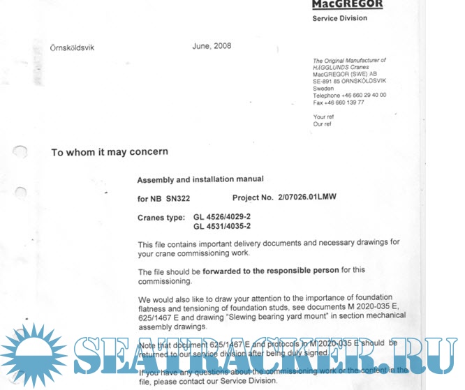 MacGregor Crane Type: GL4526/4029-2 Instruction Manual - MacGREGOR [2005, PDF]