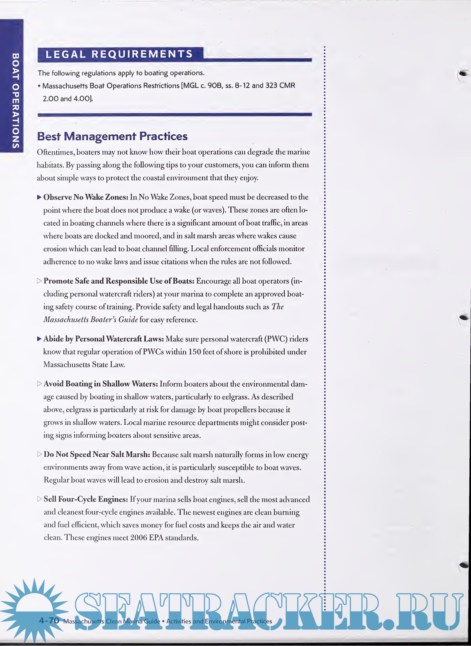 Description: Part of today's active boating and marina industry in Massachusetts is sound stewardship of our oceans, harbors, and wetlands. Given the right tools and knowledge, marina operators, boaters, and the general public can all help reduce or eliminate pollution caused by using and maintaining boats.The result? Cleaner water for boaters, the public, and wildlife to enjoy.