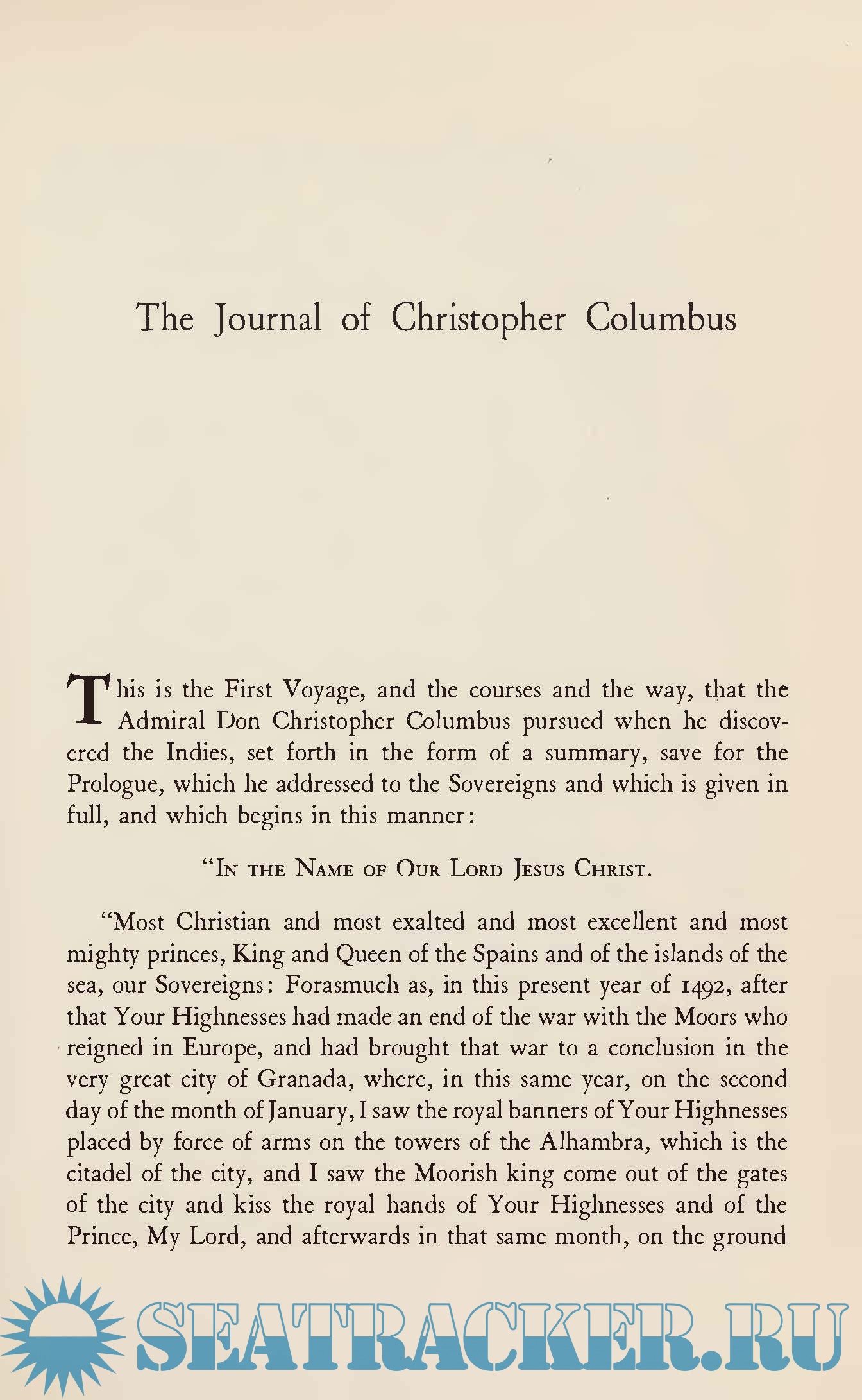 Description: A day-by day account kept by Christopher Columbus during his first expedition to the Americas recounts his hopes, fears, and experiences.