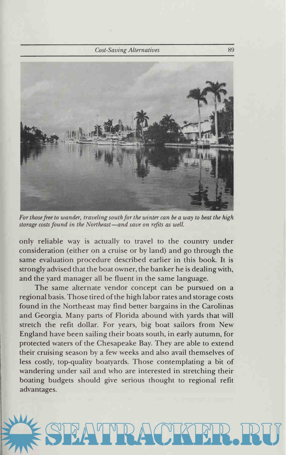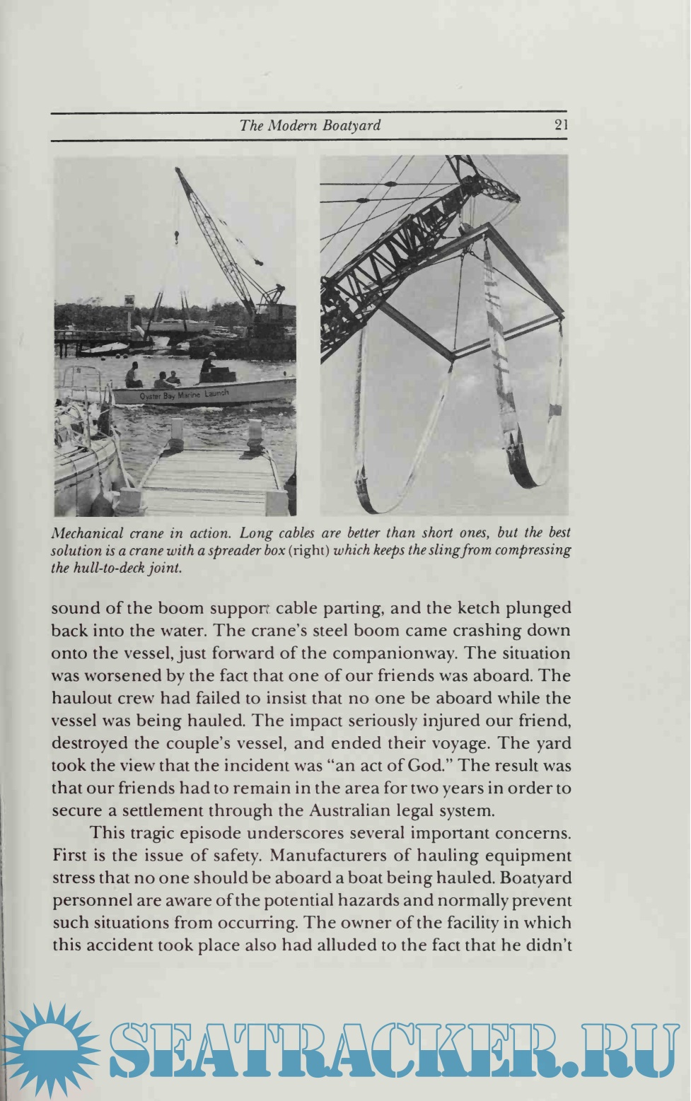 Year: 1988 Language: english Author: Naranjo R.J. Genre: Guide Publisher: International Marine Publications Co ISBN: 0-87742-962-6 Format: PDF Quality: Scanned pages Pages count: 188 Description: It you own a powerboat or sailboat more than 20 feet long, chances are you've already made the acquaintance of a boatyard or marina. Your needs may be simple — a place to berth in the summer or haul out in the winter. Or perhaps you're in the market for a new paint job, an engine overhaul, or major structural repairs. Whatever your needs, this one-of-a- kind guide will help you get the best care for your boat by using your time and money effectively. Author Ralph Naranjo, a boatyard manager as well as a boat owner himself, begins by helping you evaluate your priorities and skill levels to decide what kind of boatyard you really need. For some mechanically inclined owners, a no-frills, do-it-yourself yard is a real bargain; for others, it is a false economy. Knowing what you're looking for, Naranjo feels, is halfway to getting there. He then takes you on an in-depth tour of the modern boatyard, describing the equipment you'll find in use and offering helpful guidelines for evaluating competence. Typical haulout and storage packages are compared — right down to the fine print — and there are important tips on contracts, estimates, and work orders that can substantially reduce your yard bills while ensuring more pleasant working relationships with the boatyard staff. For the do-it-yourself minded, Naranjo thoroughly details winterization procedures, offers an extensive annual maintenance survey, and has several helpful suggestions on cost-effective alternatives. Naranjo applies this same careful scrutiny to marinas. Whether you're stopping overnight or looking for a permanent home for your boat, he'll help you choose the best facility for your needs, weighing safety and social concerns against economic ones. Regional differences are taken into consideration, and there's also a glimpse of future trends, including dockominiums and slip ownership. Naranjo's own comments are supplemented by a detailed survey of boatyard owners from coast to coast. Experts claim that the average boat owner should figure on investing 5 to 10% of the purchase price of a boat in its annual storage and upkeep. In view of the considerable outlay of time and money involved, there has long been a need for a book that tells you how to make this investment wisely. Here it is.