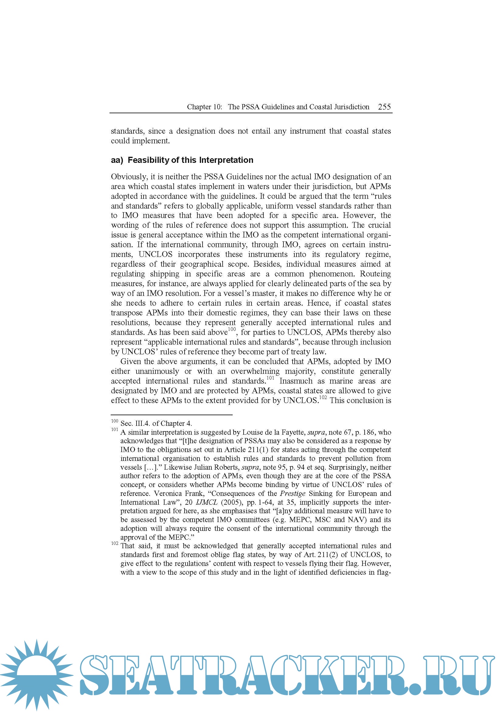 Year: 2008 Language: english Author: Markus J. Kachel Genre: Textbook Publisher: Springer Edition: 1 ISBN: 978-3-540-78778-5 Format: PDF Quality: eBook Pages count: 395 Description: The idea of this study emanated from one of many lively discussions I had during my time as a student on the LL.M. programme at University College London. In the aftermath of the disastrous Prestige sinking off the French Atlantic coast in November 2002, I came across the legal questions posed by Particularly Sensitive Sea Areas. Prof. Malcolm Forster of UCL encouraged me to pursue my research and eventually supervised a study on the Western European PSSA. I am greatly indebted to him for stimulating and sustaining my interest in this subject matter. When I considered starting a PhD study on the broader legal implications of the PSSA concept, Prof. Dr. Hans-Joachim Koch (University of Hamburg), my teacher and mentor for many years, supported my project and agreed to supervise it. I would like to express my sincerest appreciation to him. He not only aroused my interest in environmental law, but also taught me always to explore the subtleties of an issue. Being an assistant to him for some years was an indispensable prerequisite for conceptualising, drafting and finalising such a long study.