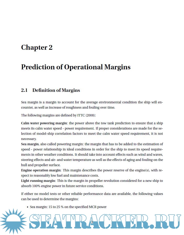 Moreover, it gives a thorough review of available methods to compute sea margin (like methods to compute added resistance and speed loss due to waves, and how such methods can be used to compute the sea margin), and service margin, and thus, it is a survey on methods to account for hull and propeller fouling.