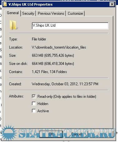 Initially the original file (setup V.Ships UK Ltd 2010.exe) was archived (as a zip file) and prepared for torrent, but after comment of HOPERUS , I replaced the original torrent with another one witch contain all directory installed by the setup file. All directory have 665 MB I will check again