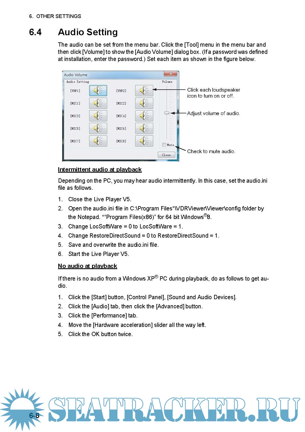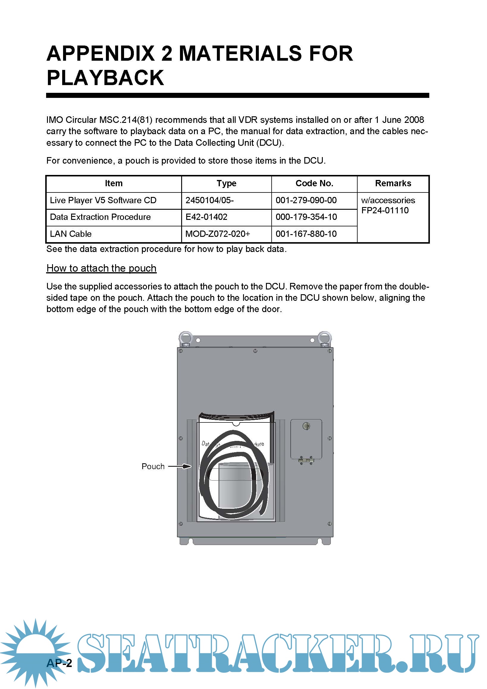 Year: 2014 Language: english Author: Furuno Genre: Manual Format: PDF Quality: eBook Pages count: 91 Description: Live Player V5 is a software program that installs in a PC, and functions to monitor and playback the data collected in the VR-7000’s DRU, Long Term Device. Notes on usage Observe the notices shown below to prevent malfunction. • Do not connect the Live Player to a DRU (Fixed, Float-free) when the DRU is connected to the DCU. Also, do not attempt to extract data in the above-mentioned condition. • The Live Player of the VR-3000 is not compatible with the VR-7000. Do not use it with the VR-7000. • The screenshots shown in this manual were taken on a Windows®7 based PC. The screens you see may be different depending on PC’s OS.