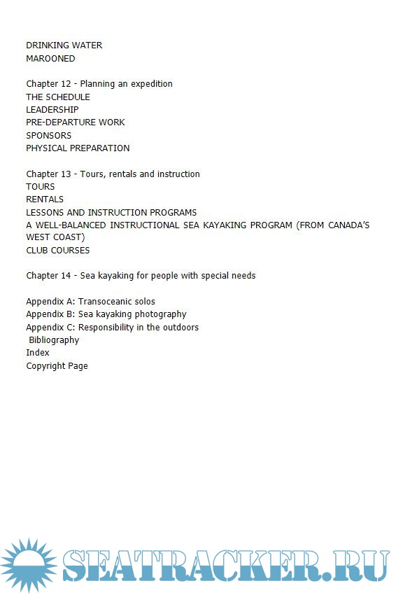 Year: 2009 Language: english Author: Dowd J. Genre: Manual Publisher: Greystone Books ISBN: 1550549766 Format: EPUB Quality: eBook Pages count: 272 Description: This classic guide focuses on the fundamentals of seamanship that are essential knowledge to all ocean paddlers. Sea kayaking has come a long way since this informative manual was published more than twenty years ago. From an offbeat pastime enjoyed by an adventurous few, the sport has become an industry unto itself. Veteran paddler John Dowd’s readable, well-illustrated guide still stands as "the bible" for both new and experienced kayakers. Sea Kayaking covers the basics of equipment and technique, including types of paddles and strokes. But the key focus in this revised and updated edition is on sound seamanship and good risk management: how to read the weather and the water, how to navigate, how to travel with a group. Drawing on his long experience paddling in all climates, Dowd presents practical, concrete advice on dealing with potential hazards (from surf to sea ice to sharks) and carrying out rescues. The book contains new photographs and numerous helpful charts, diagrams and illustrations. It also covers expedition planning, instructional methods and sea kayaking for people with disabilities. As more and more paddlers take to the water, this classic guide continues to be required reading for those seeking adventure on the open ocean.