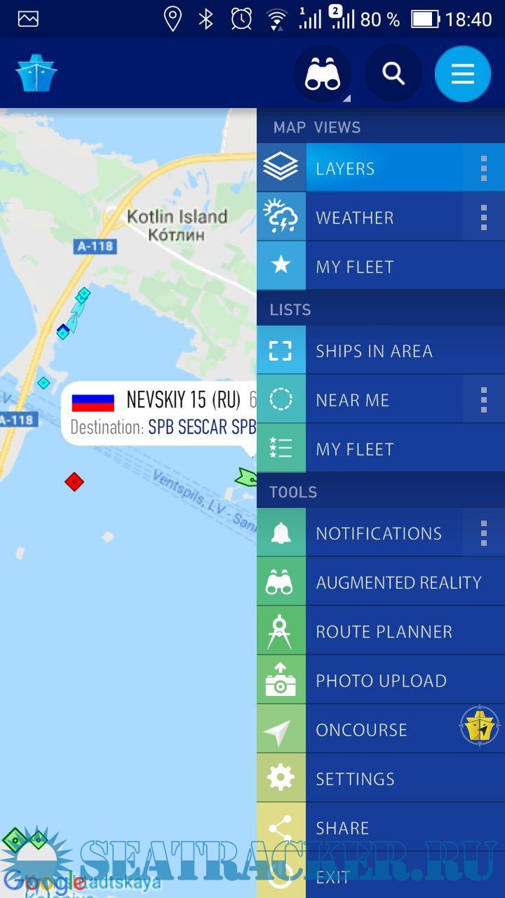 Year: 2020 Version: 3.9.40 Developer: MarineTraffic Platform: Android System Requirements: Android 4.4+ Localization: english Crack: Included Description: MarineTraffic displays near real-time positions of ships and yachts worldwide. Connected to the largest network of land-based AIS receivers, the app covers most major ports and shipping routes. • View VESSELS ON THE LIVE MAP, search for ships, boats and seaports and see what's near you! • More than 100,000 VESSELS PER DAY report their positions via MarineTraffic AIS • View live wind and 48-hour WIND FORECASTS on the map • ANIMATED PLAYBACK of vessel's track • PORT ARRIVALS & DEPARTURES live for over 4,000 ports and marinas, current conditions in ports and estimated time of arrival for the boats & ships. • Manage your list of vessels ("MY FLEET"), shared with all your devices and MarineTraffic.com • Browse 2,5 MILLION PHOTOS of ships, harbours, lighthouses and much more! ➜ NEW! Identify and track vessels sailing beyond the range of land-based AIS receiving stations, using satellite tracking, with ACCESS PLUS 24 (in-app purchase) Identify vessels around you at a glance with the Augmented Reality tool (in-app purchase) Just point your device's camera to the horizon and get all the information you need about the vessels in your area: name, flag, speed, distance from you and a lot more. Also, for MarineTraffic paying subscribers: • NAUTICAL CHARTS • SAT-AIS DATA Join the great MarineTraffic community!