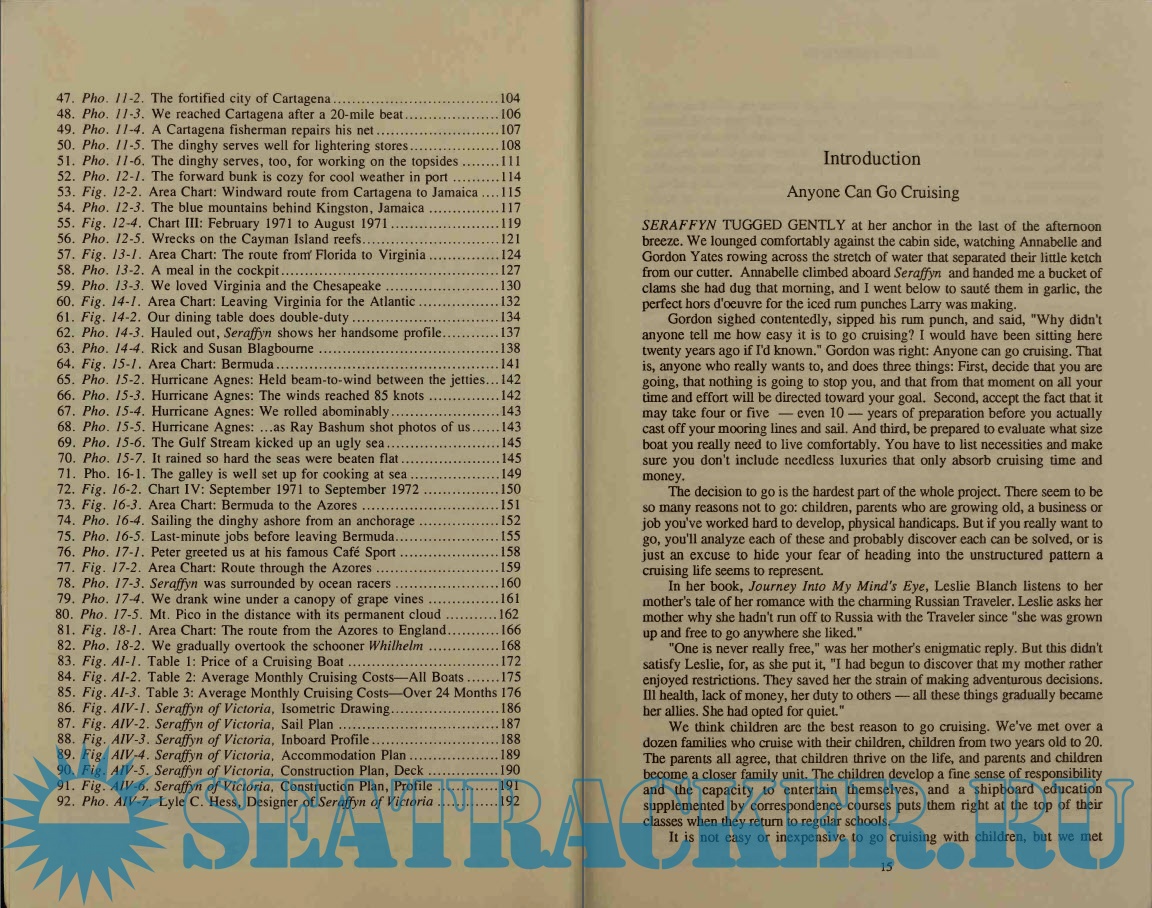 Description: The cruising tale is full of the sights and sounds, the fragrances and native customs of foreign lands, especially Central American and the Caribbean. It is a story of a leisurely sail through the Gulf of Cortez and on through Panama Canal to the Azores and England. Cruising in Seraffyn is also a carefully thought out guide to living aboard a small boat, with fun and economy as the guide principles. Four appendices provide data that is vital for anyone comtemplating long distance cruising