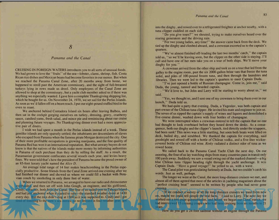 Year: 1992 Language: english Author: Lin and Larry Pardey Genre: Guide Publisher: Sheridan House Edition: First ISBN: 0-924486-36-8 Format: PDF Quality: Scanned pages Pages count: 200 Description: The cruising tale is full of the sights and sounds, the fragrances and native customs of foreign lands, especially Central American and the Caribbean. It is a story of a leisurely sail through the Gulf of Cortez and on through Panama Canal to the Azores and England. Cruising in Seraffyn is also a carefully thought out guide to living aboard a small boat, with fun and economy as the guide principles. Four appendices provide data that is vital for anyone comtemplating long distance cruising